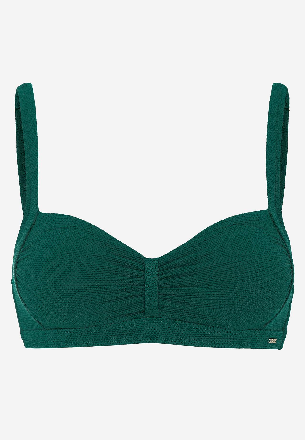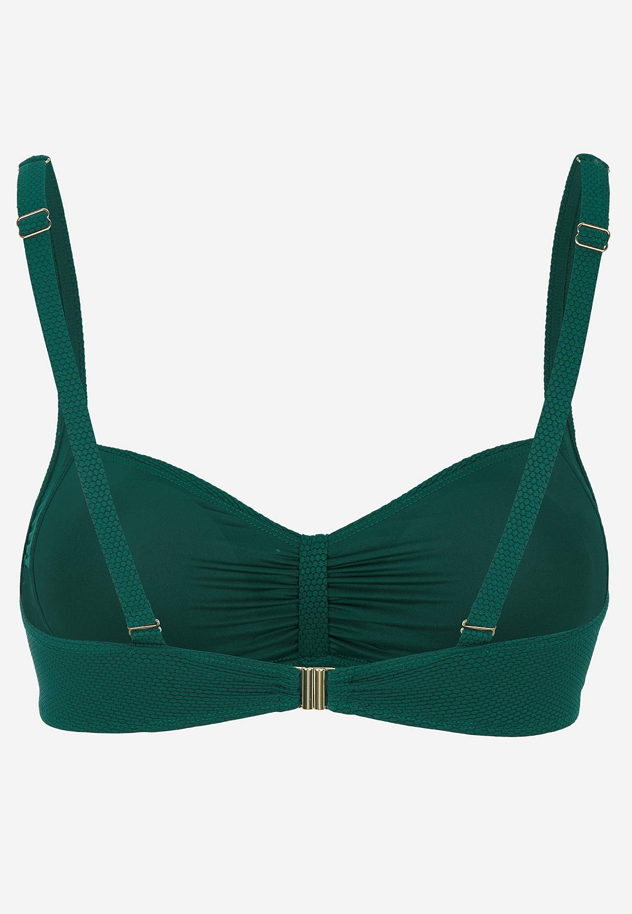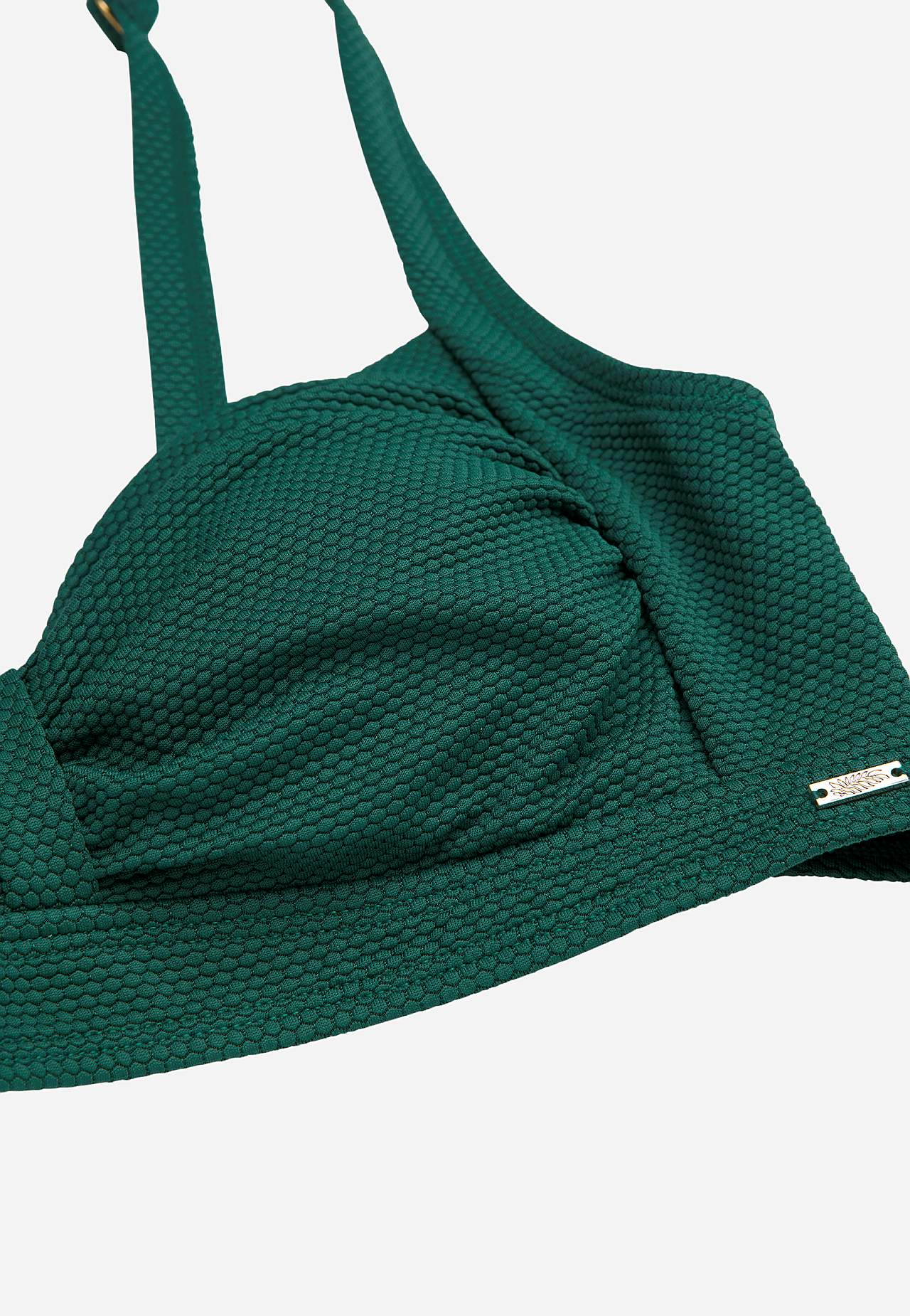 Bikinioberteil mit einem Strukturmuster und Raffung über der Brust. Weiches, bügelloses Modell mit Stützen an den Seiten. Material aus recyceltem Polyester. Körbchen mit abnehmbarer Polsterung. Verstellbare Schulterträger. Einfach schließbarer Metallverschluss auf der Rückseite.
