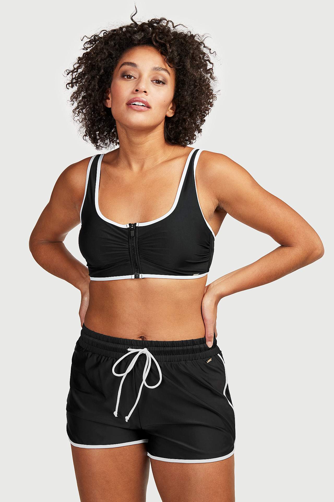 Sportlicher Bikini-BH mit Verschluss aus Kunststoff und einem Vorderverschluss. Gut sitzendes Modell mit geformter Polsterung in den Körbchen, das den Brüsten guten Halt und eine schöne runde Form verleiht. Bügelloses Modell und Körbchen mit gepolsterten, abnehmbaren Einlagen. Verstellbare Trägerbänder. Frontverschluss mit... Mehr erfahren