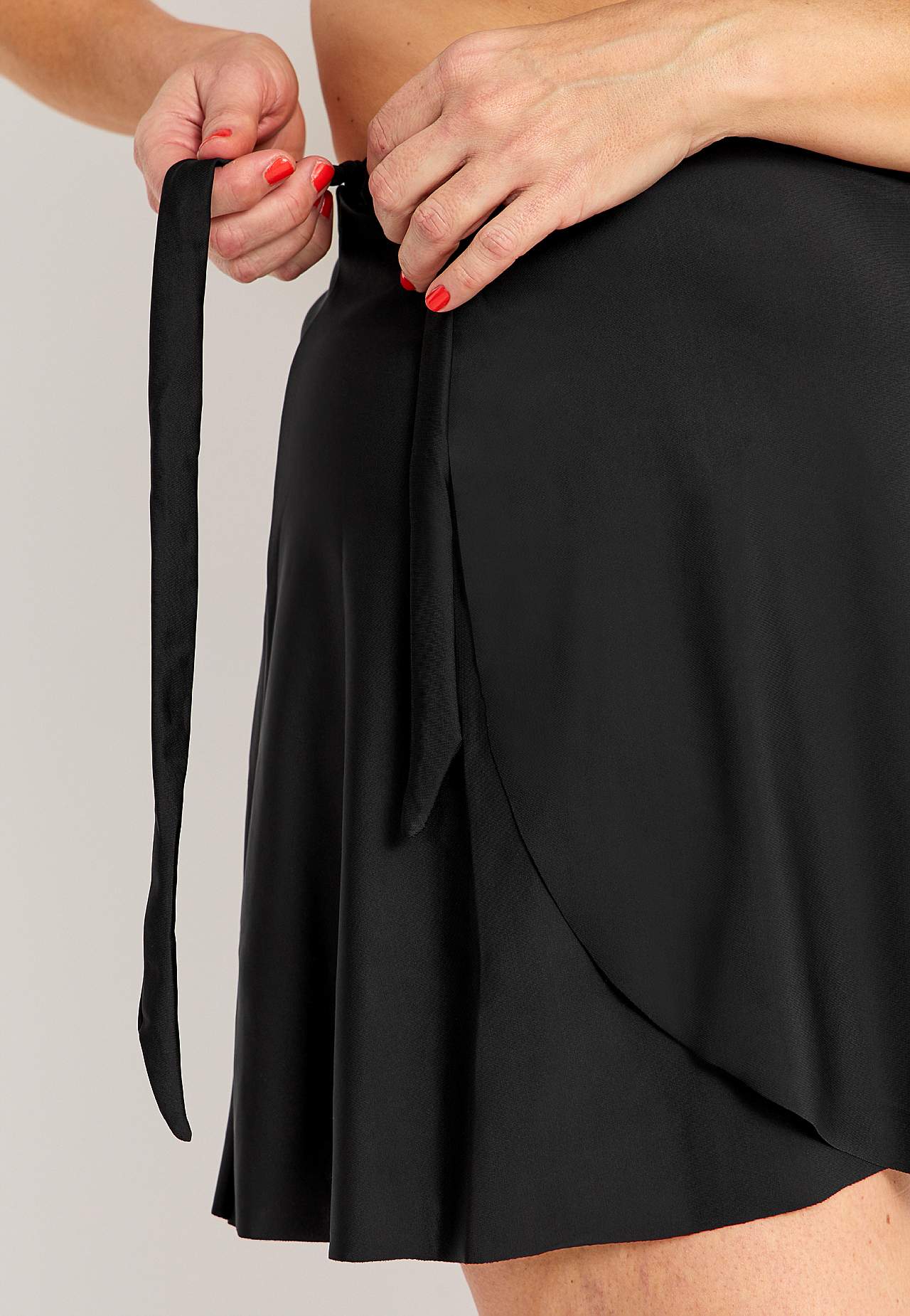 Kurzer Sarong aus schnelltrocknendem Stretchtrikot. Stilvolles Modell zum Binden an der Seite. Ohne Innenhöschen. Schnelltrocknendes Material mit Stretch. Ungefüttert. Abgerundeter Saum. Die Länge hängt von der Größe ab und beträgt ca. 45-51 cm.