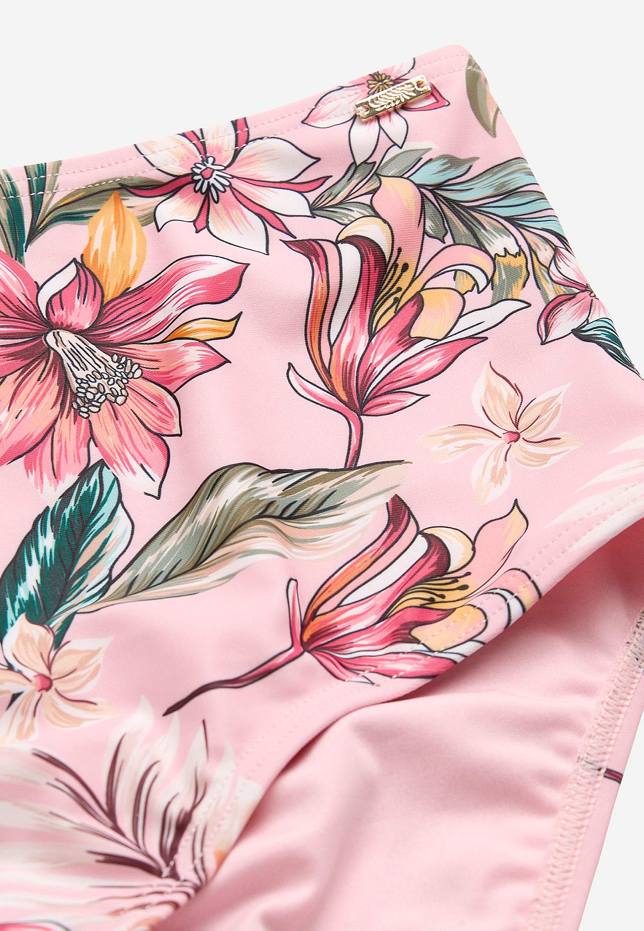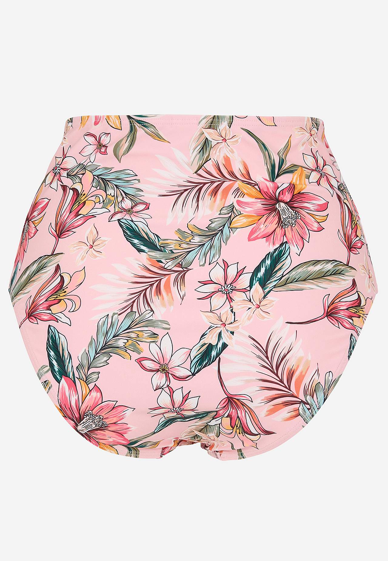 Blumiger Bikini-Unterteil aus recyceltem Polyester. Hoher Bund mit weichem Gummiband. Vollständig gefütterte Innenseite.