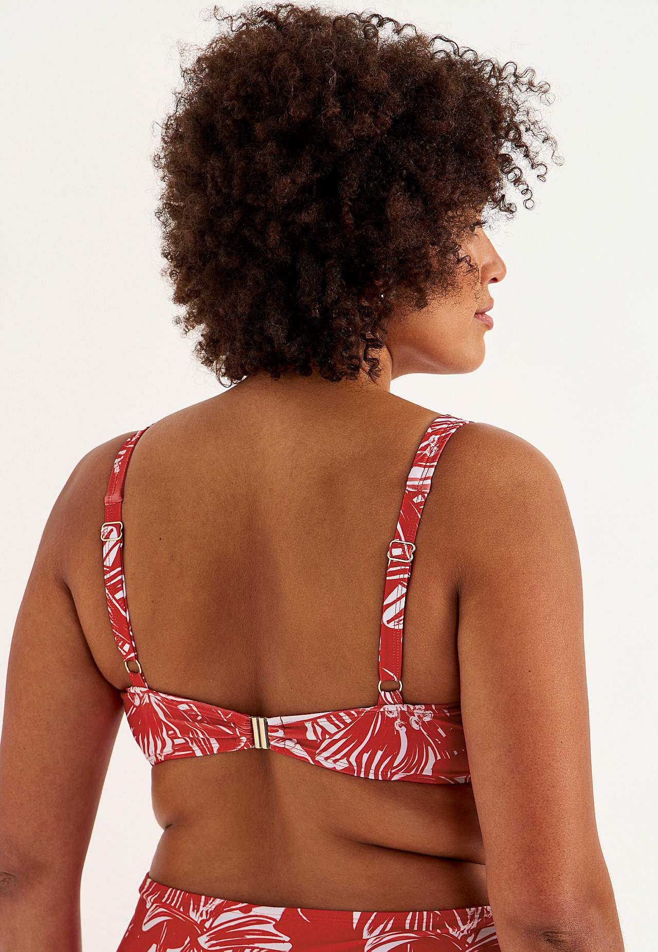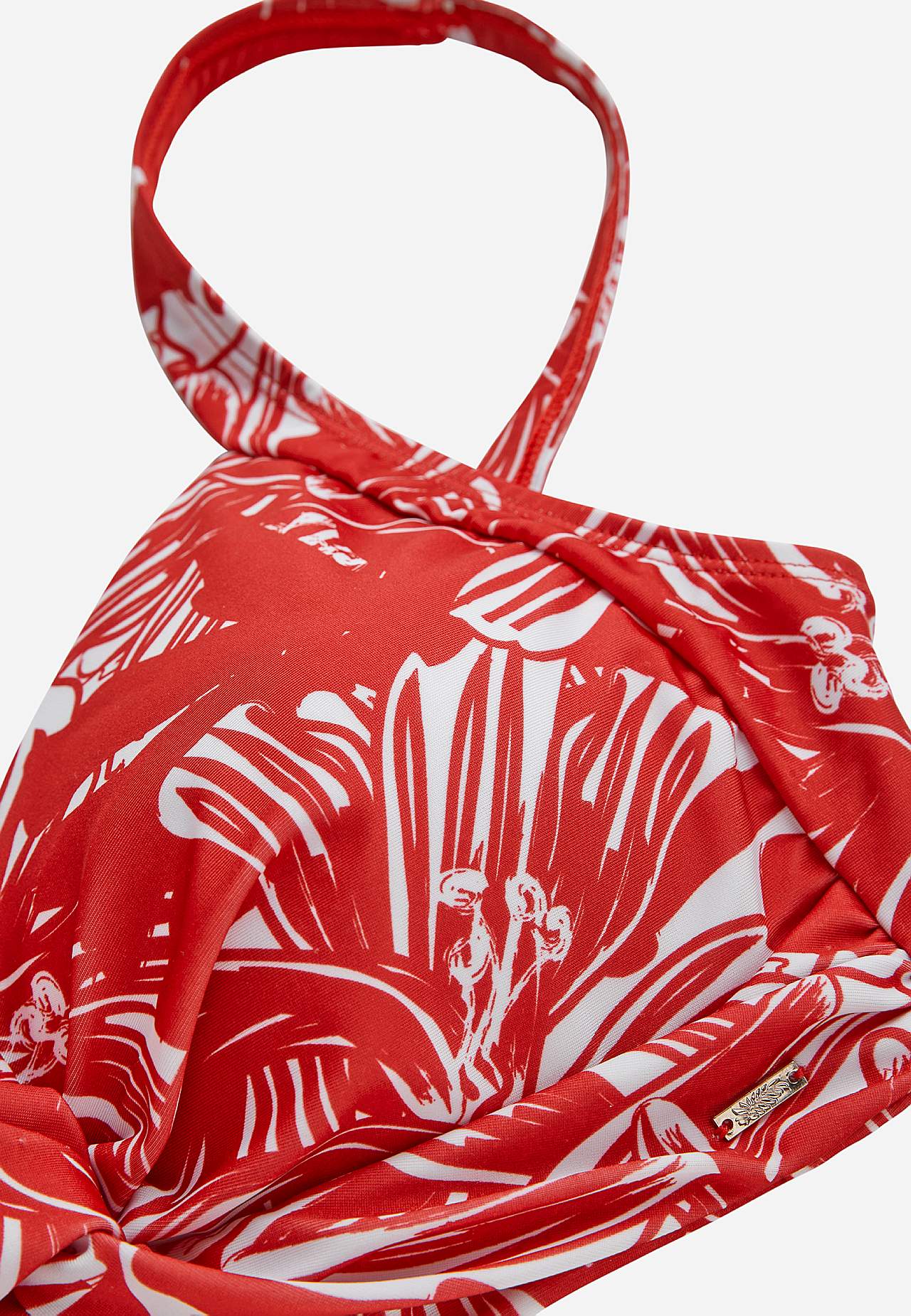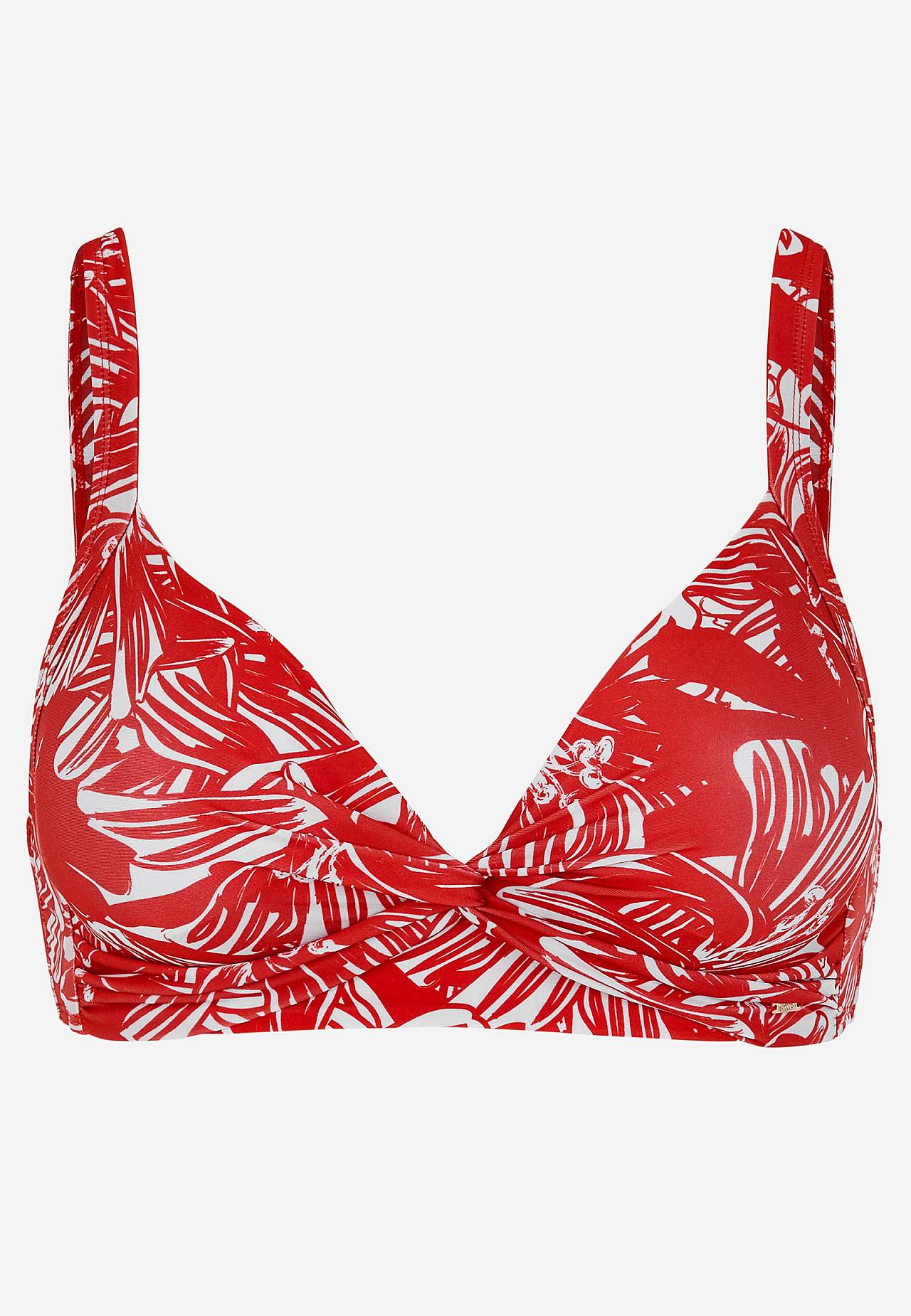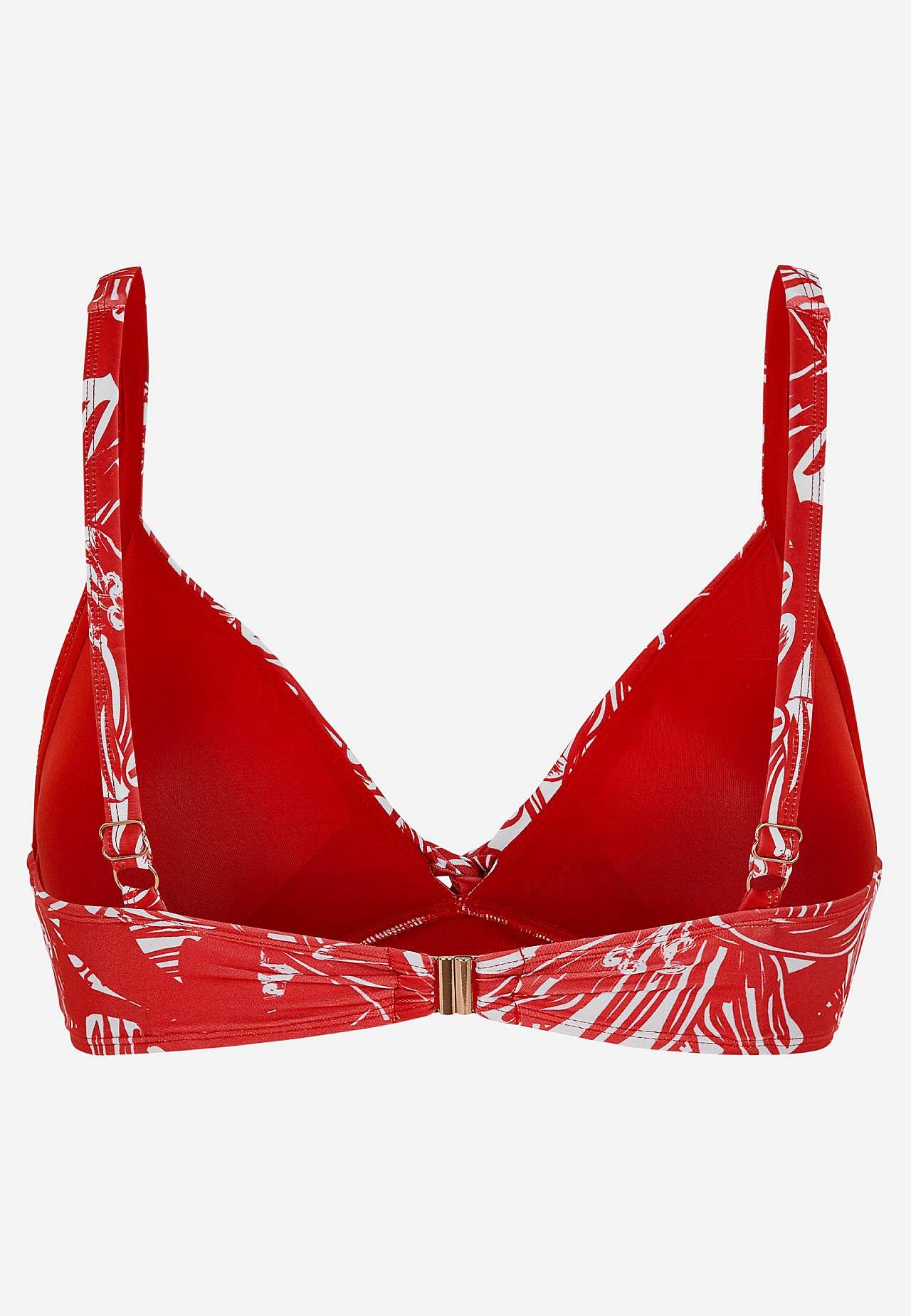 Weicher Bikini-BH ohne Bügel-BH mit Stütze an den Seiten für zusätzlichen Support. Bikini aus recyceltem Polyester. Modell mit einem Blumen-Muster. Körbchen mit abnehmbarer Polsterung. Verstellbare Trägerbänder für beste Passform. Einfach schließbarer Metallverschluss auf der Rückseite.