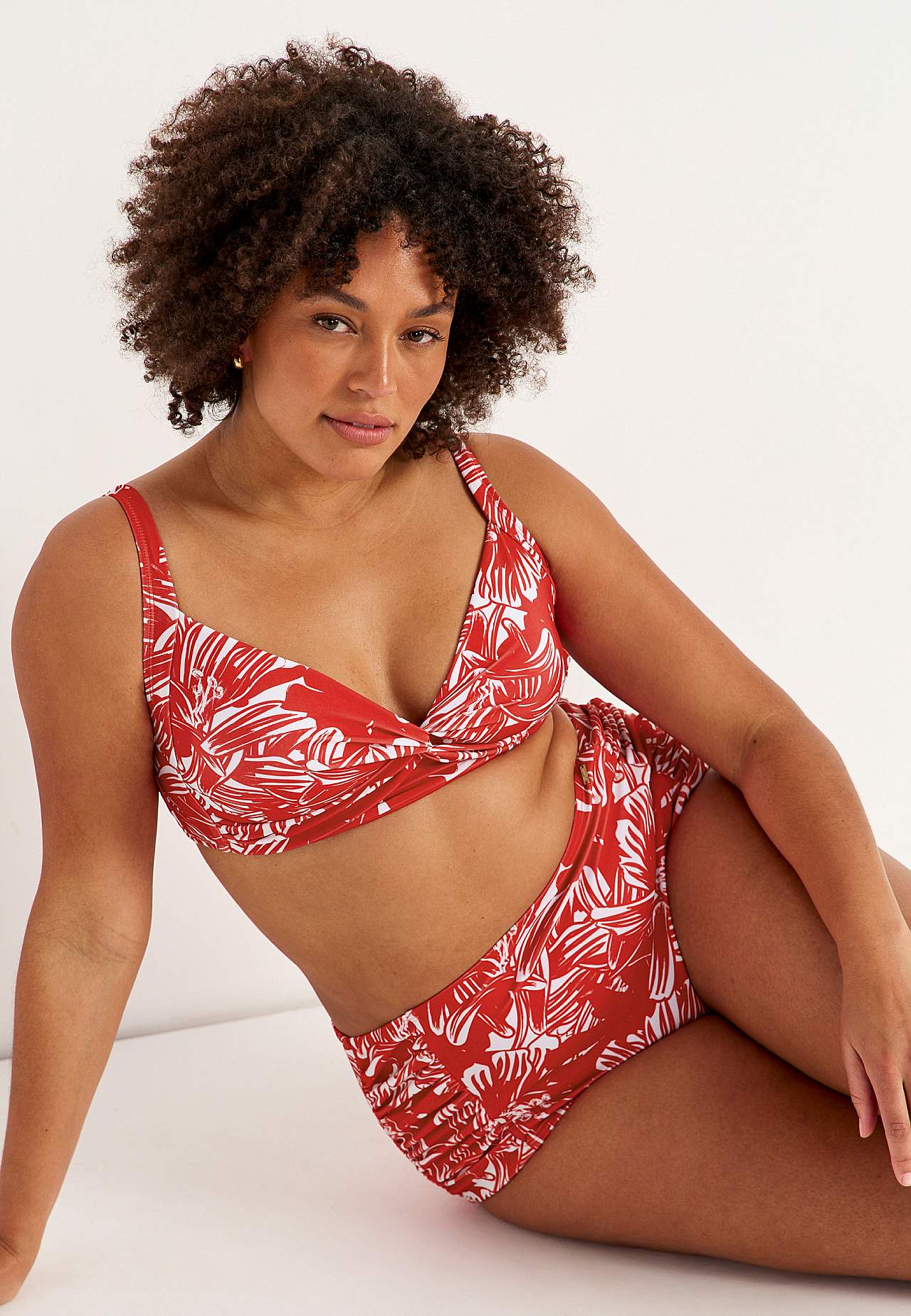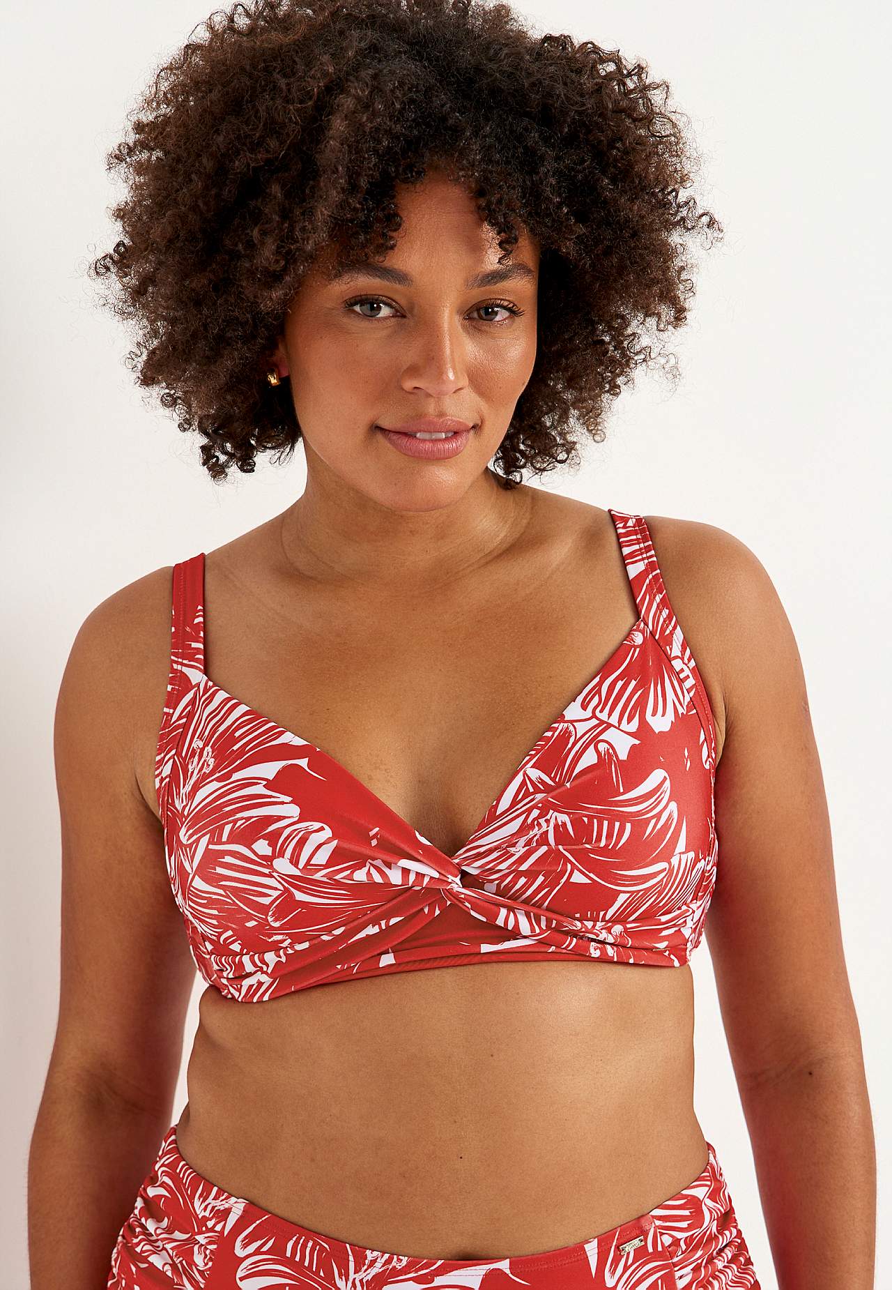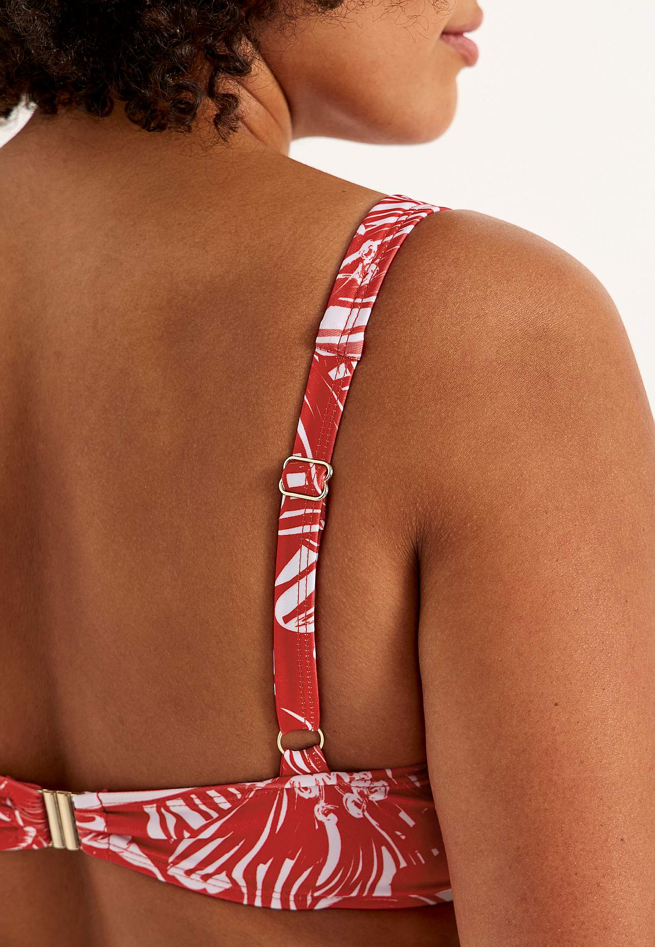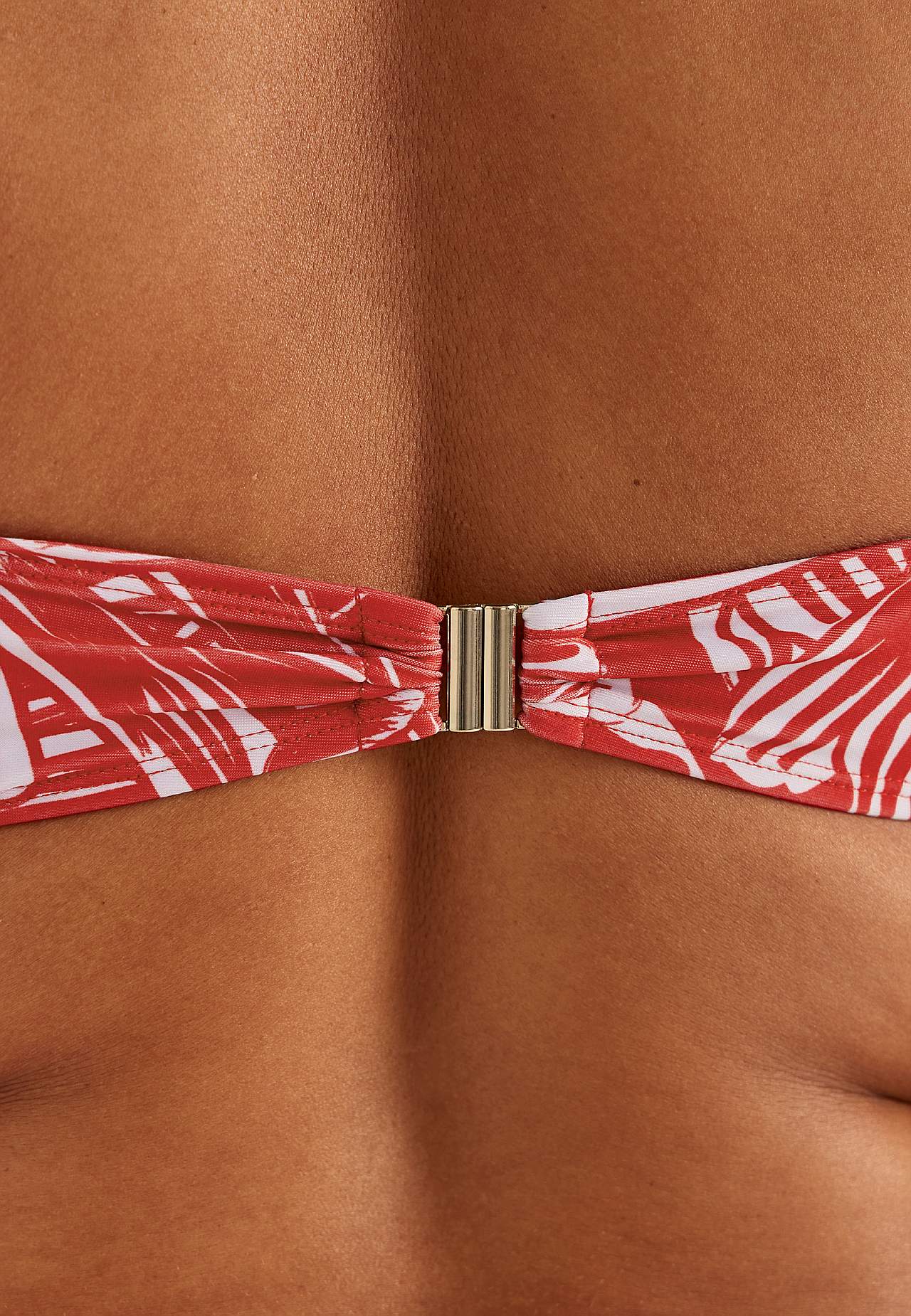 Weicher Bikini-BH ohne Bügel-BH mit Stütze an den Seiten für zusätzlichen Support. Bikini aus recyceltem Polyester. Modell mit einem Blumen-Muster. Körbchen mit abnehmbarer Polsterung. Verstellbare Trägerbänder für beste Passform. Einfach schließbarer Metallverschluss auf der Rückseite.