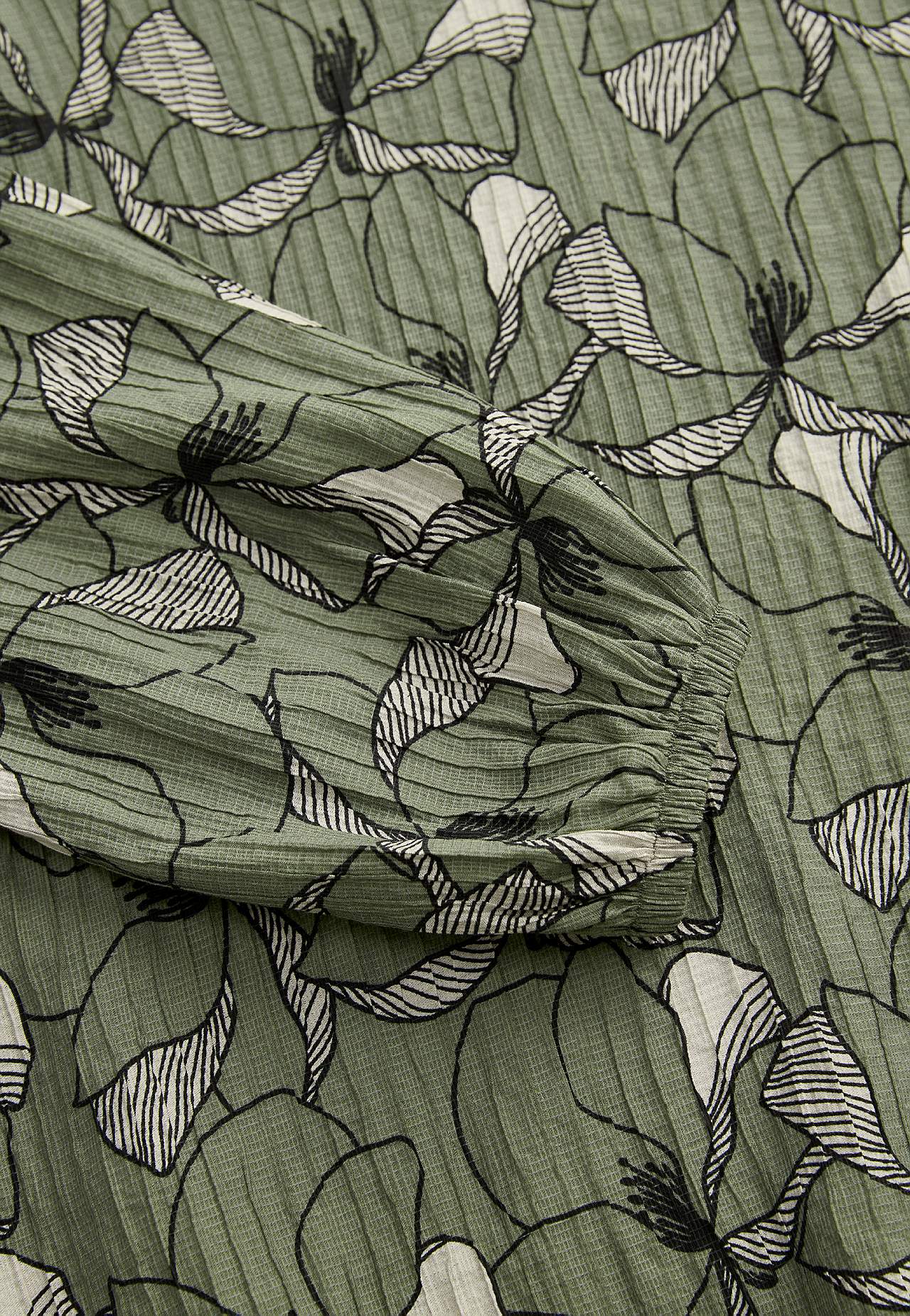Texturierte Bluse aus weicher Viskose. Gewebe mit auffallenden Streifen. Normale Passform. Rundausschnitt mit kleinem V-Ausschnitt. Runder Saum etwas länger am Rücken. Die Länge hängt von der Größe ab und beträgt ca. 66-78 cm (von der Schulter gemessen).