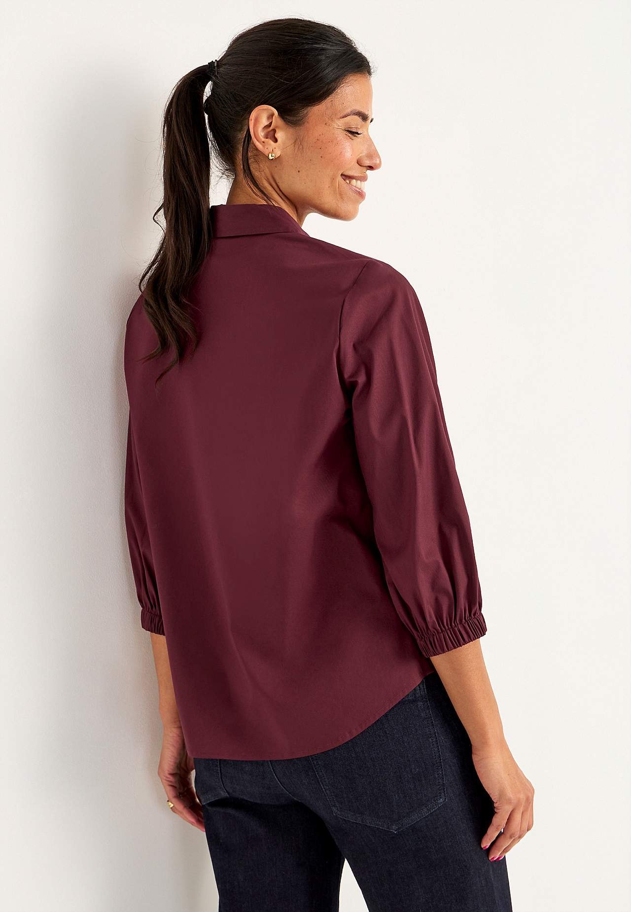 Gewebtes Hemd aus elastischem Popeline. Durchgeknöpftes Modell mit klassischem Kragen. Normale Passform. Sanft abgerundeter Saum etwas länger am Rücken. Die Länge hängt von der Größe ab und beträgt ca. 64-79 cm (von der Schulter gemessen).
