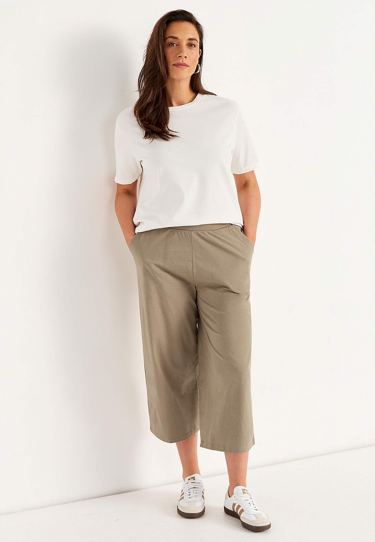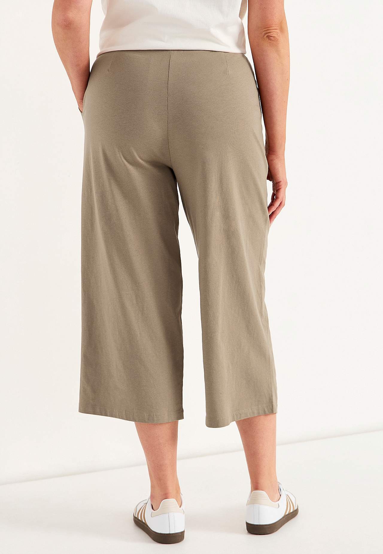 Culottes aus weicher, organischer Baumwolle. Jerseyhose mit breiten, geraden Beinen. Lässige Passform. Hohe Taille mit breitem, bequemem elastischem Bund. Geneigte Seitentaschen. Kombiniere gerne mit 702634. Die Innenbeinlänge hängt von der Größe ab und beträgt ca. 57-59 cm. Vordere Bundhöhe variiert je nach Größe: ca. 29-3... Mehr erfahren