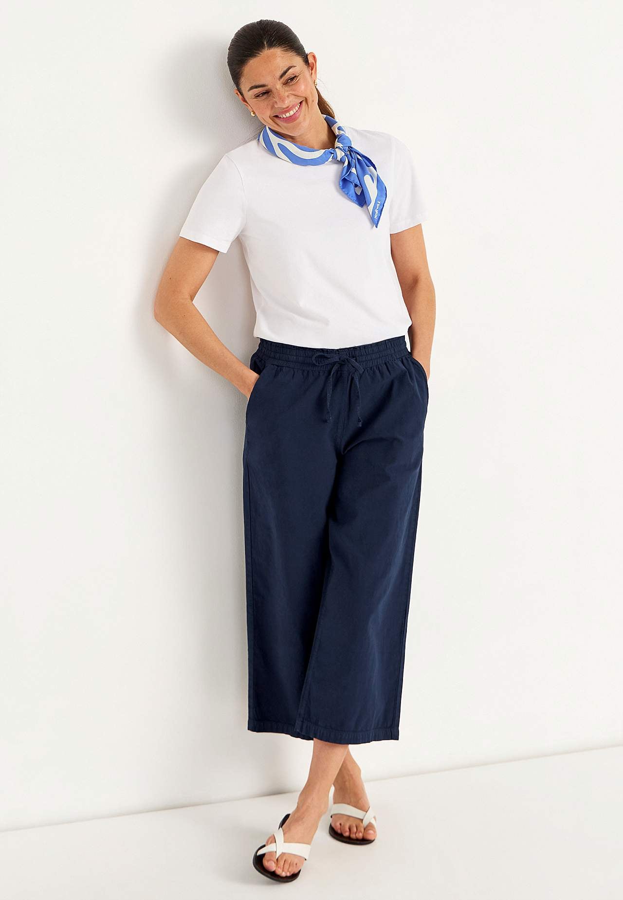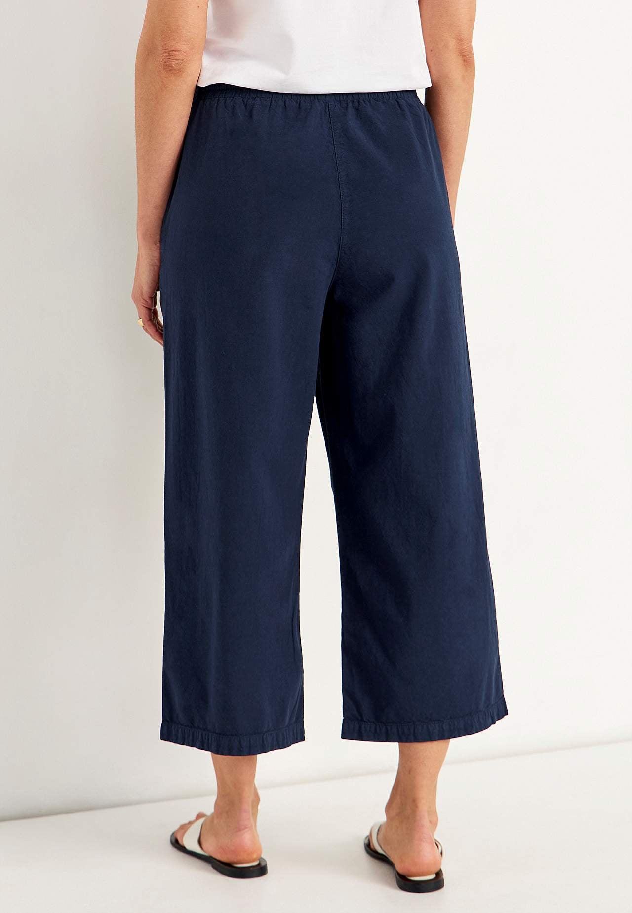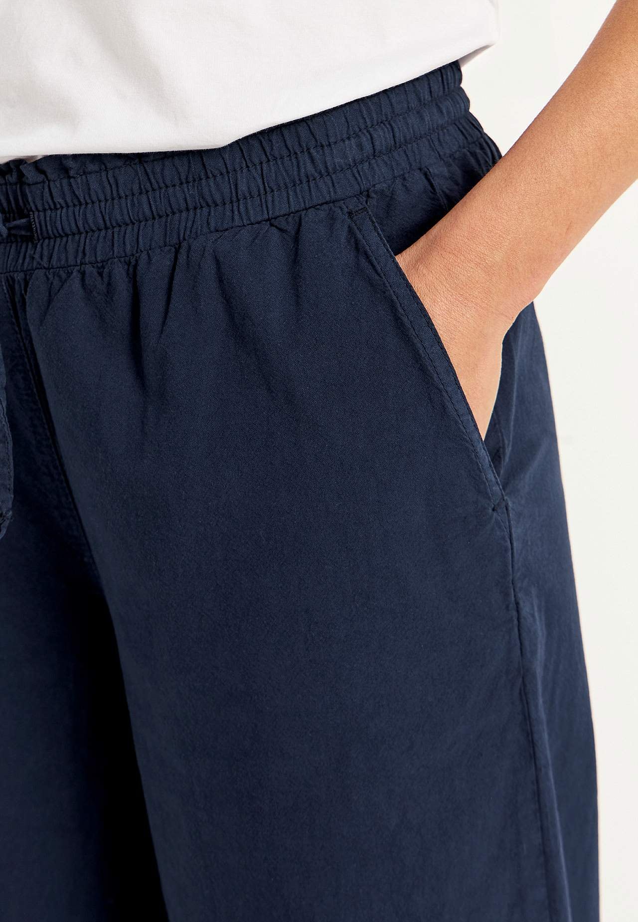 Entspannte Culotten. Gewebtes Material aus gewaschener, anschmiegsamer Baumwolle mit natürlichem Gefühl. Lockere Passform. Angenehmer, elastischer Bund mit Kordelzug. Geneigte Vordertaschen. Breite, gerade Beine. Die Innenbeinlänge beträgt ca. 57 cm bei allen Größen. Vordere Bundhöhe variiert je nach Größe: ca. 27-37 cm.