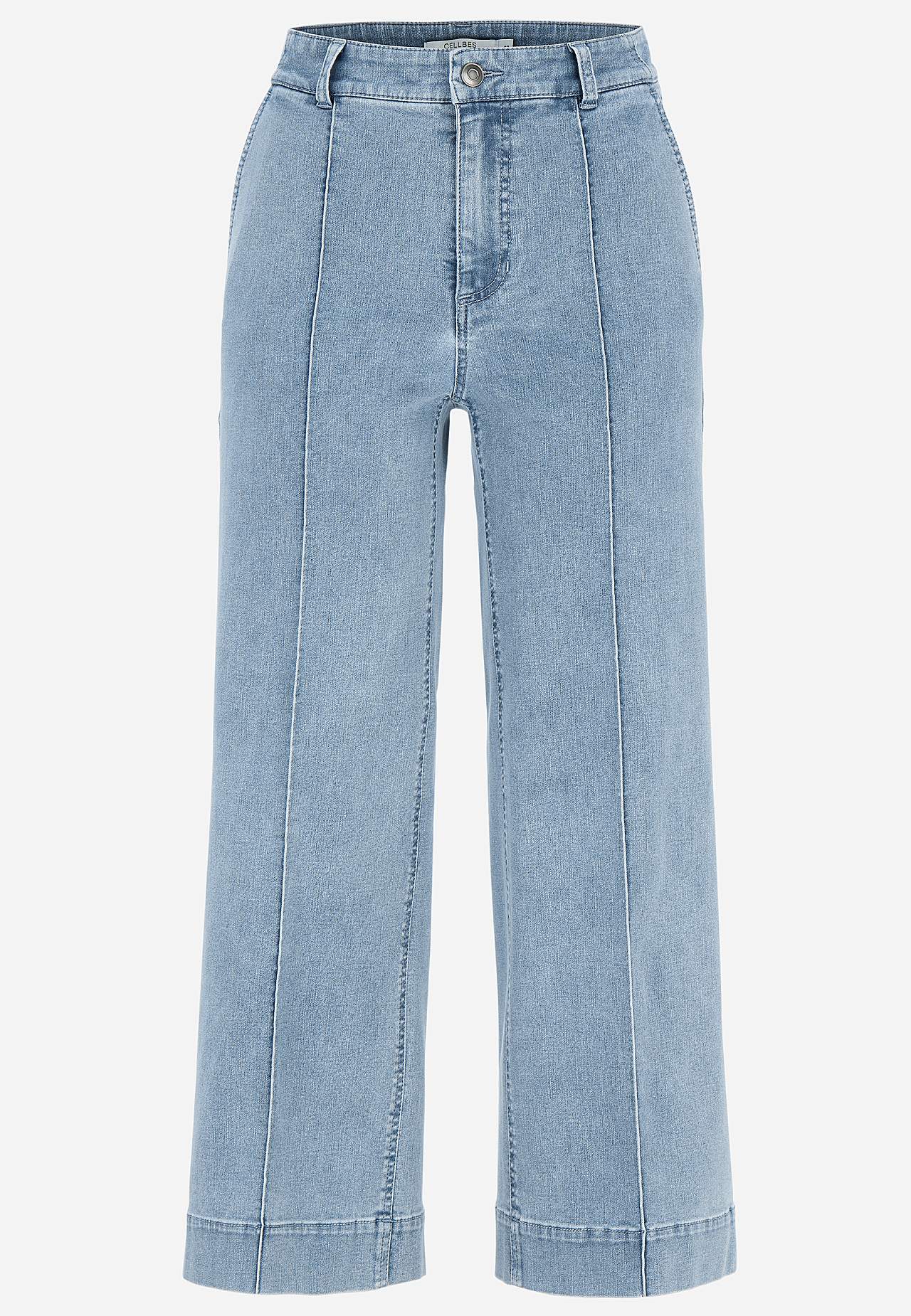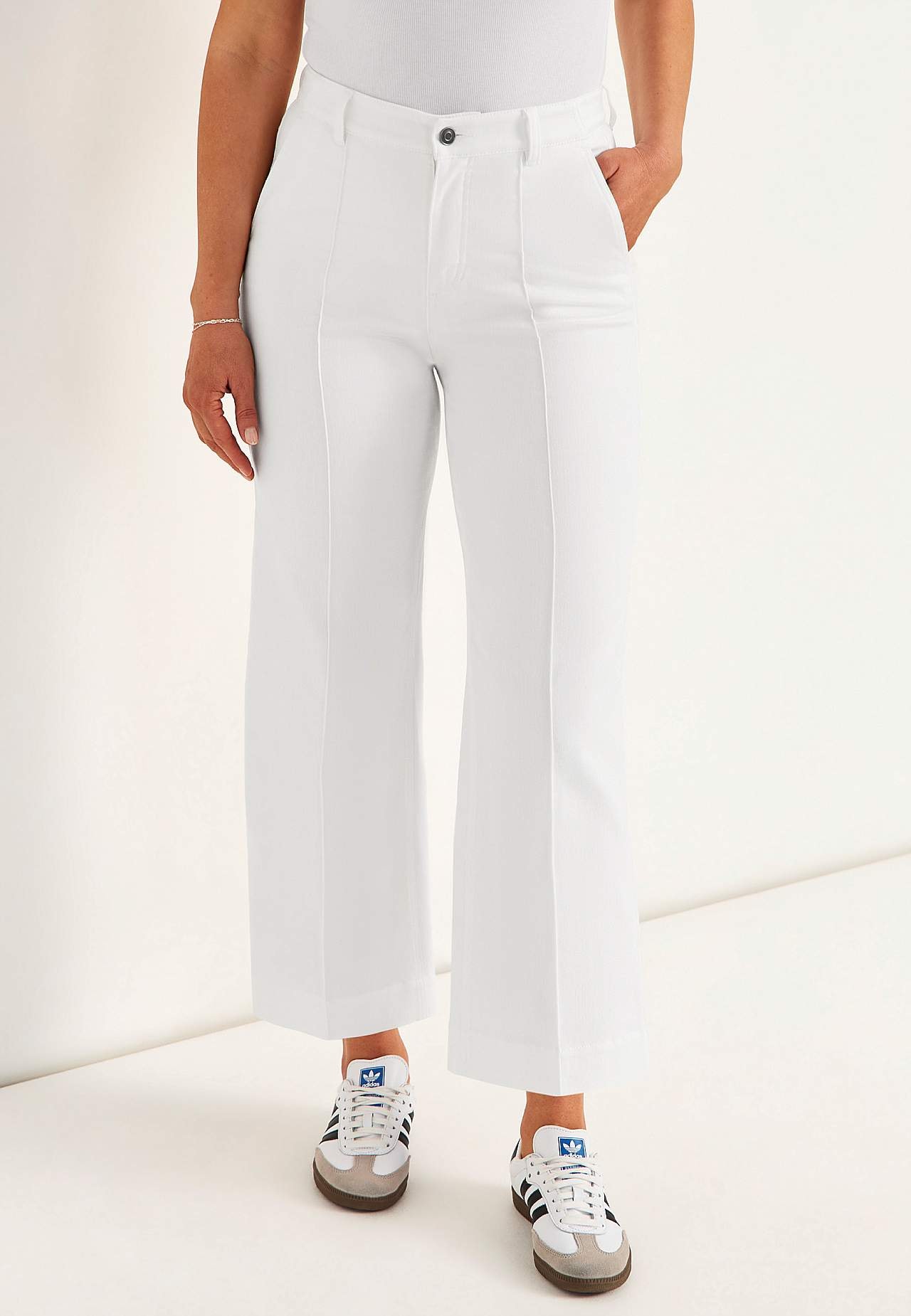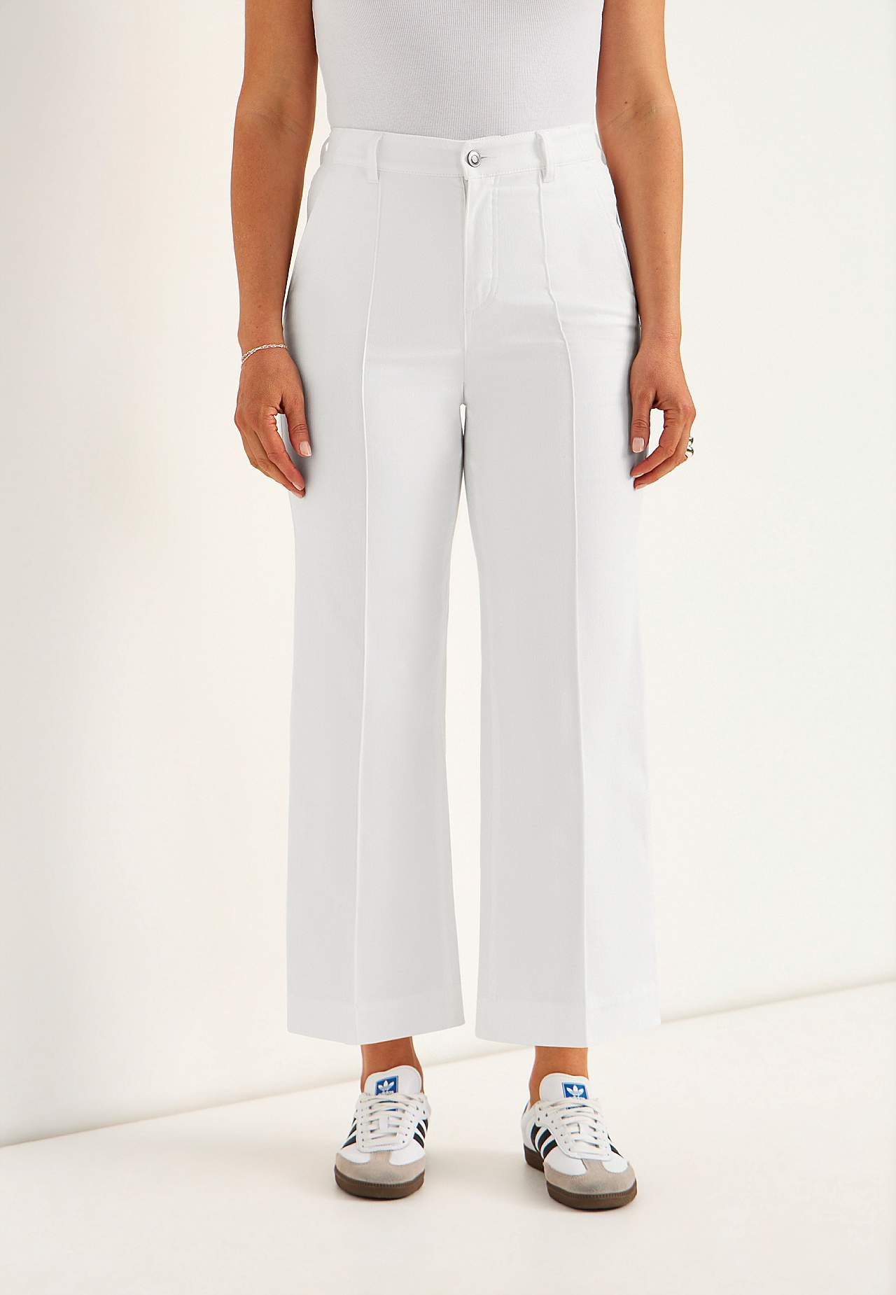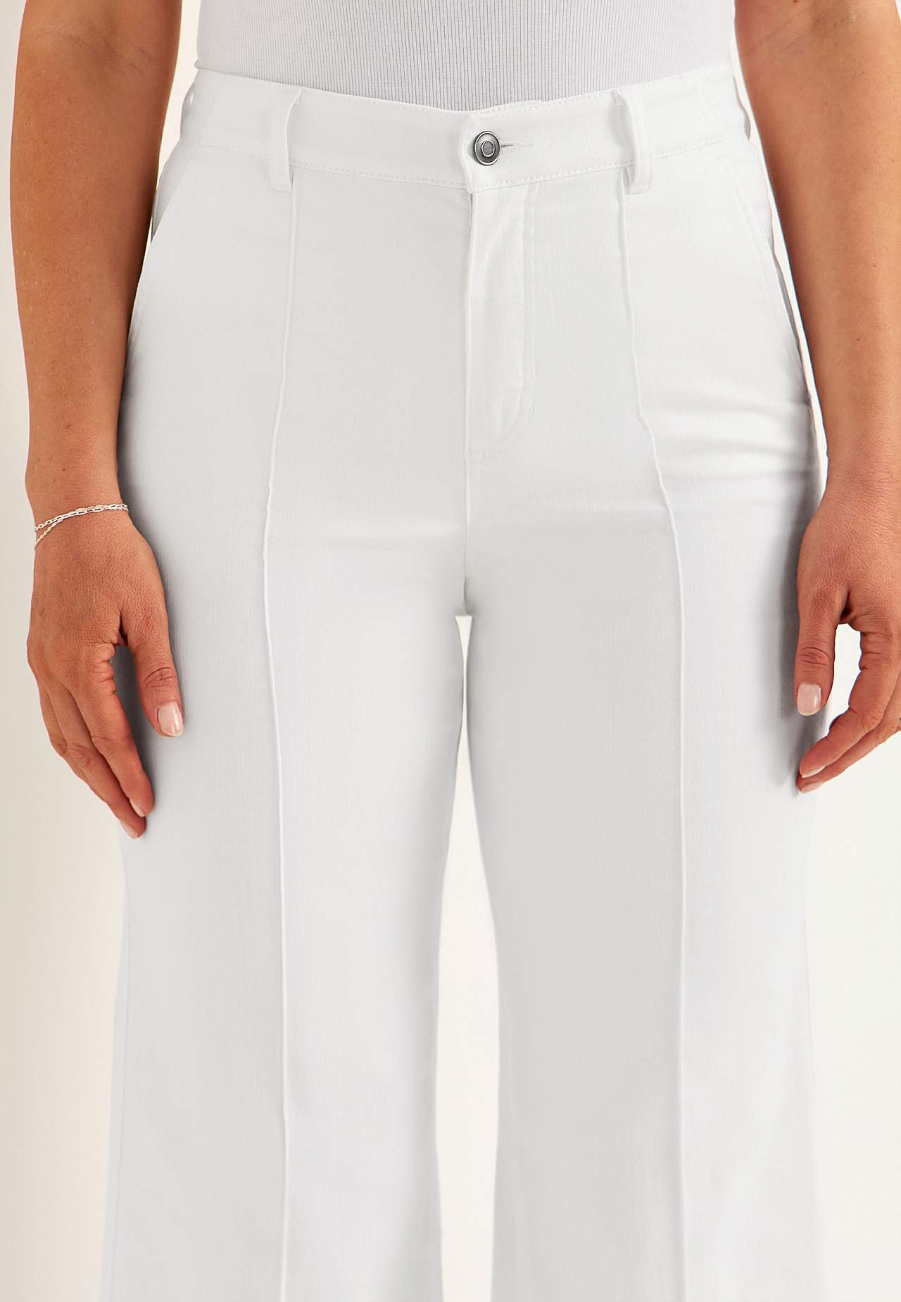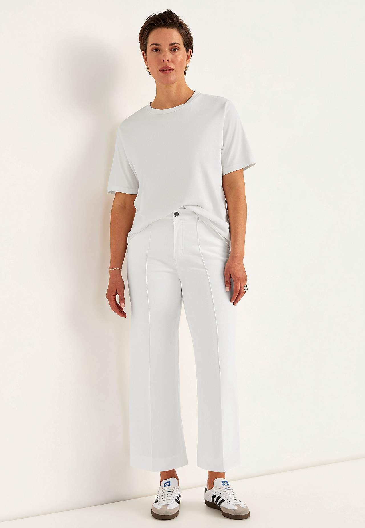 Knöcheljeans aus weichem Denim mit Stretch. Geradliniges Design mit breiten Beinen. Lockere Passform. Am Sitz etwas enger geschnitten. Normale Taille. Bund mit Gürtelschlaufen. Reißverschluss mit Knopf. Schräge Seitentaschen vorne. Genähte Bügelfalten vorne. Gespielte geschlitzte Taschen hinten. Die Innenbeinlänge beträgt c... Mehr erfahren