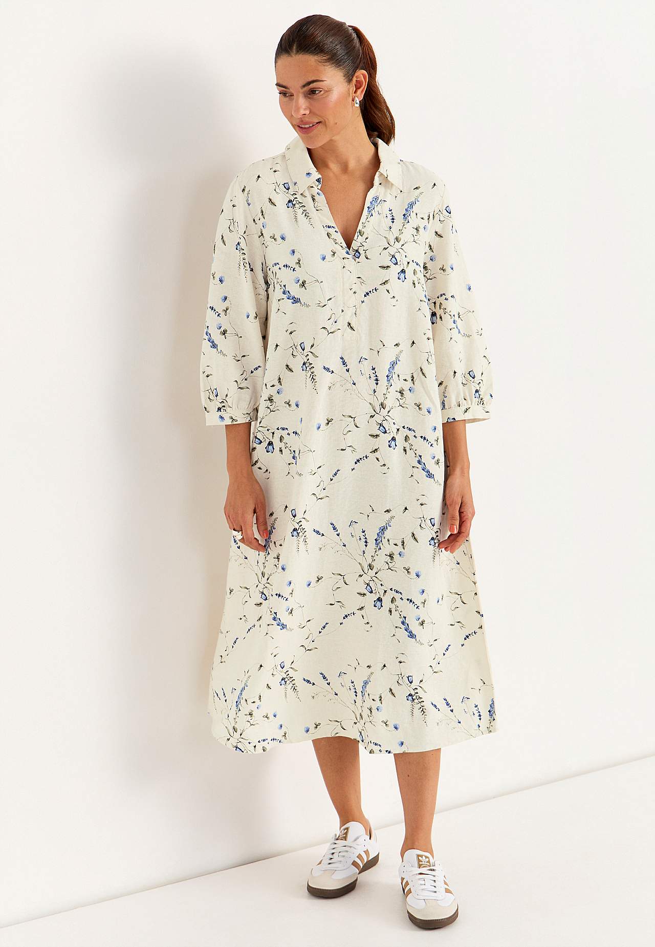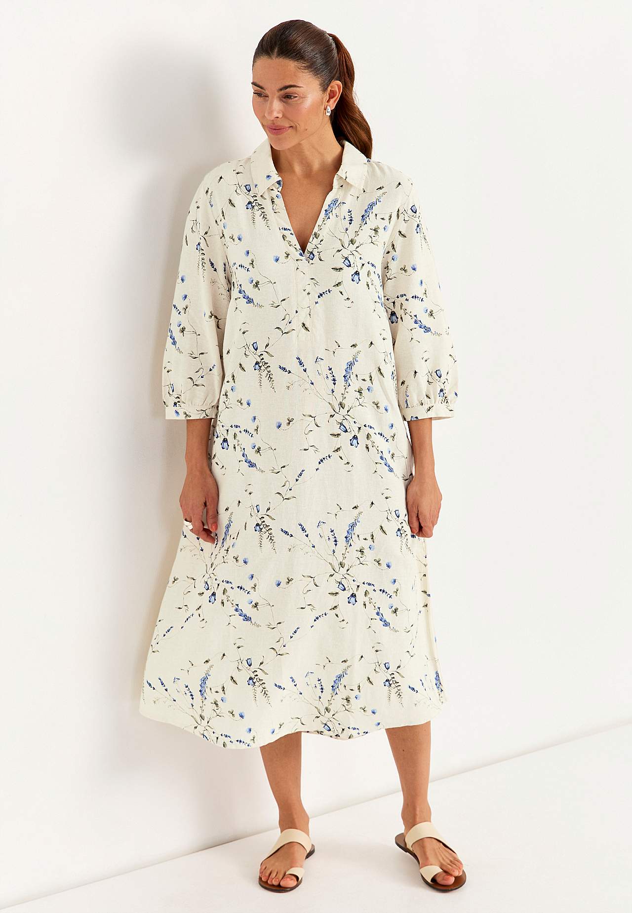 Blumiges Leinenkleid