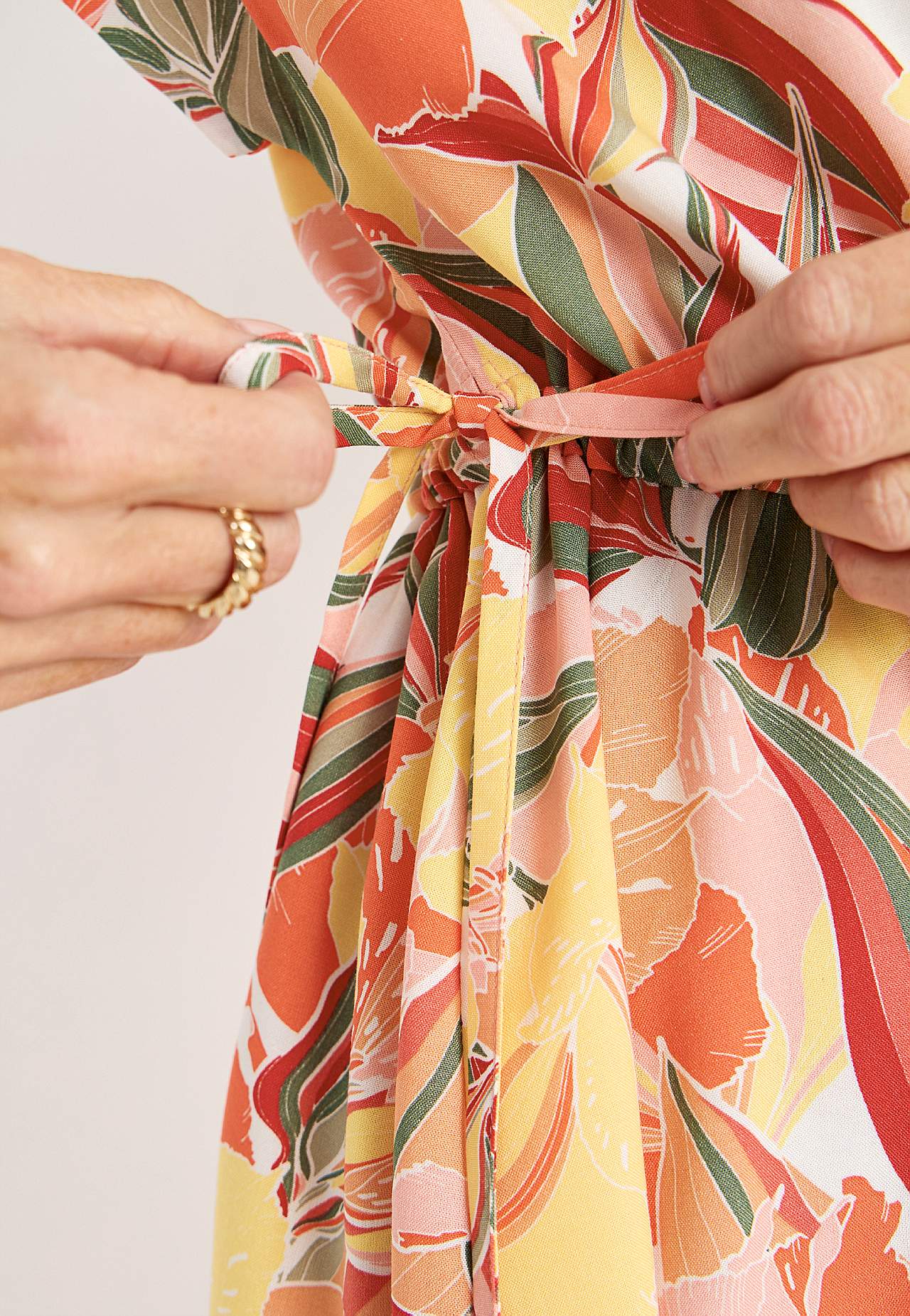 Luftiges, kühlendes Material mit matter Oberfläche. Lässige, lockere Passform. Breite Flügelärmel. Versteckte Schnürung in der Taille. Einfach zu verstellen und auf beiden Seiten zu binden. Entscheiden Sie sich für eine lockere oder engere Passform. Sanft abgerundeter Saum. Die Länge des Rückenteils beträgt ca. 128 cm bei a... Mehr erfahren