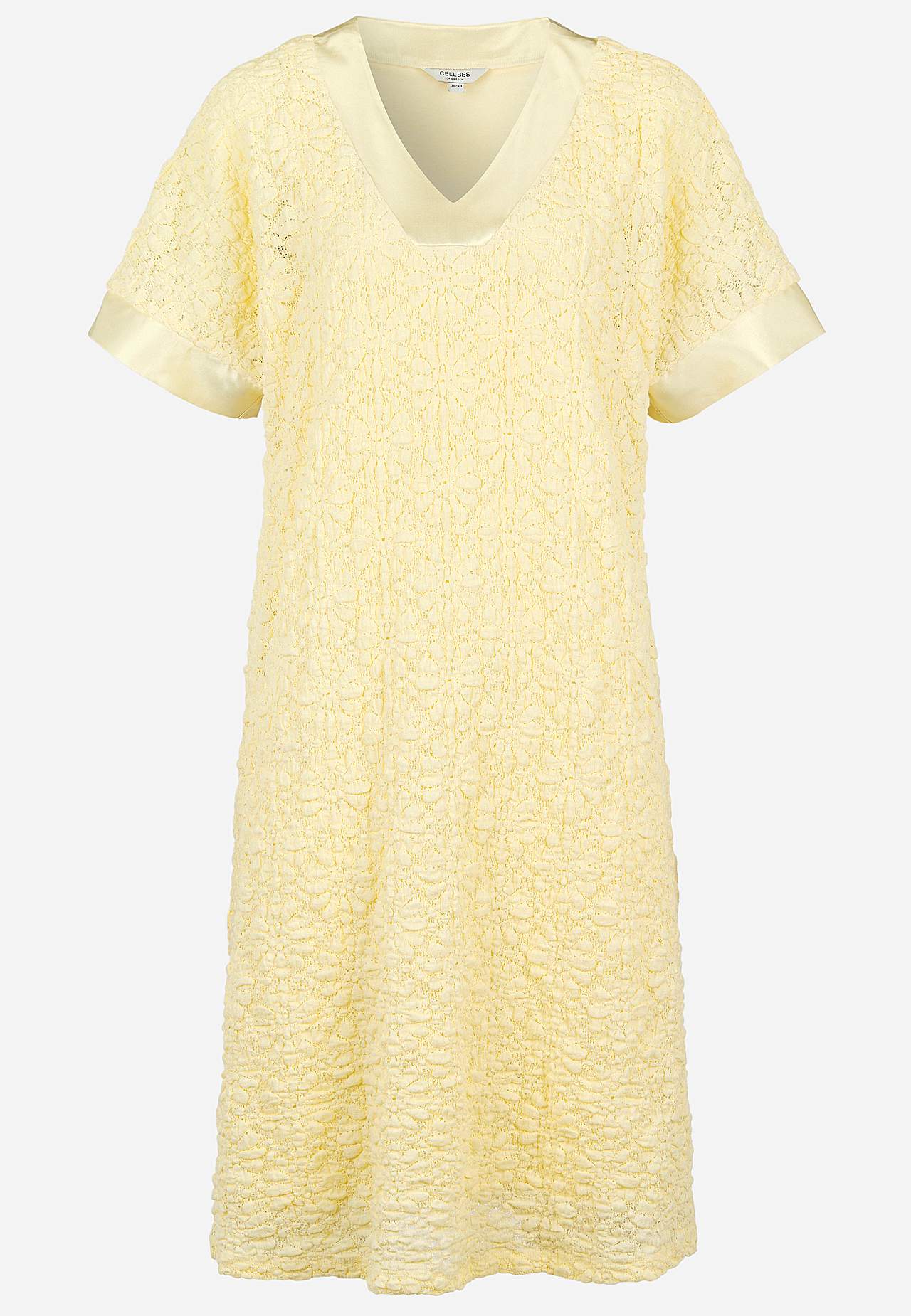Gefüttertes Partykleid aus süßem, elastischem Spitzenjersey. Eleganter Satinrand am Ausschnitt und an den Ärmelenden. Weiches, elastisches Futter aus Jersey. Oversize Passform in leichter A-Linie mit etwas enger anliegendem Oberteil. V-Ausschnitt mit Satinrand. Breite, ungefütterte Kaftanärmel mit Satinrand an den Ärmelende... Mehr erfahren
