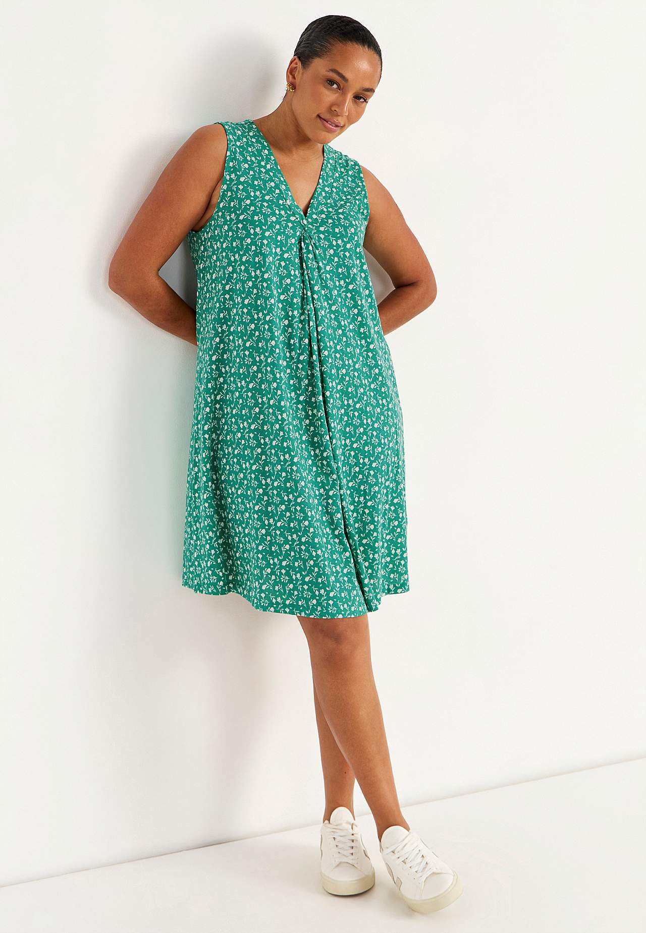 Ärmelloses Jerseykleid mit einem V-Ausschnitt