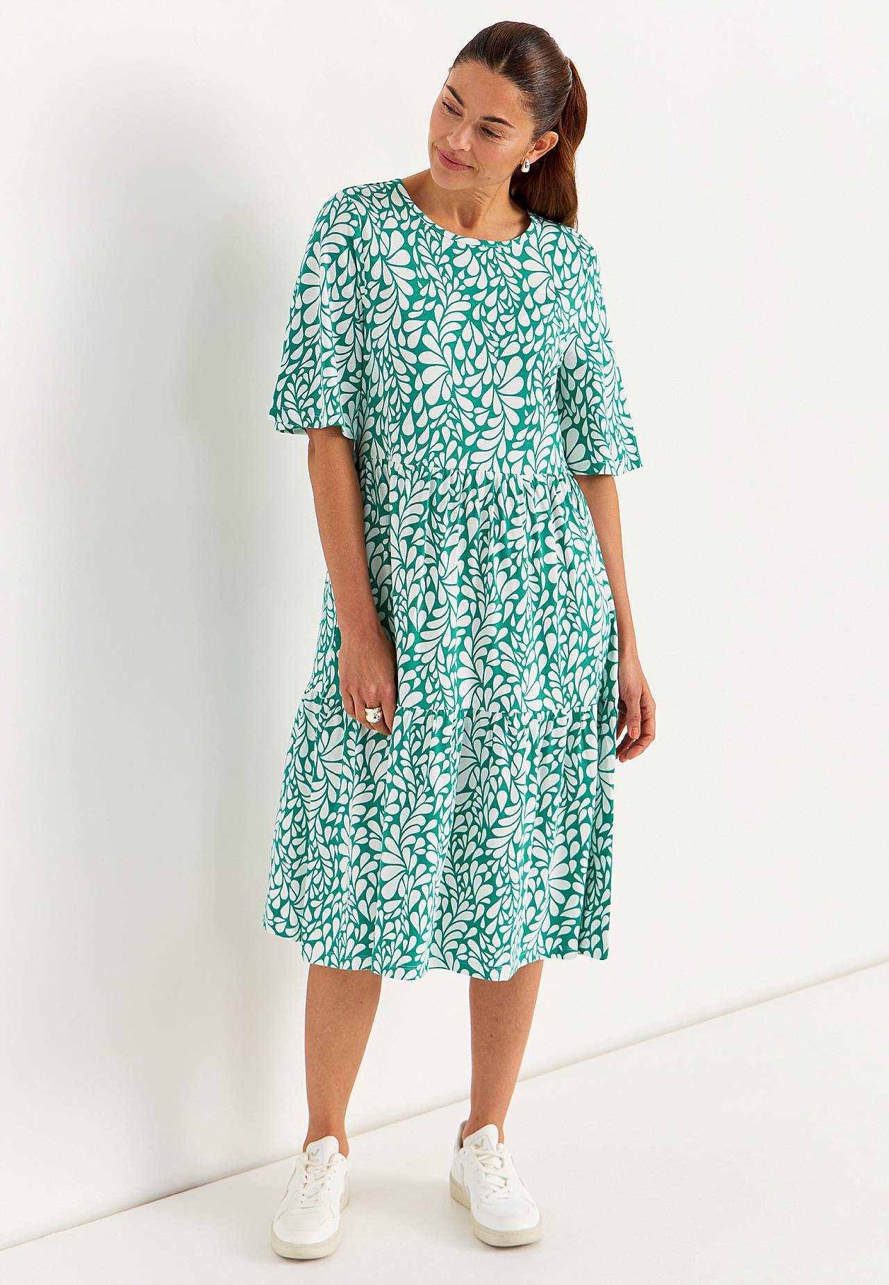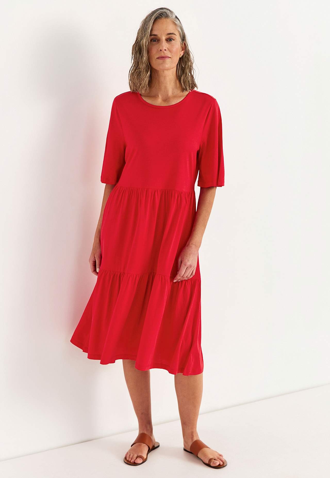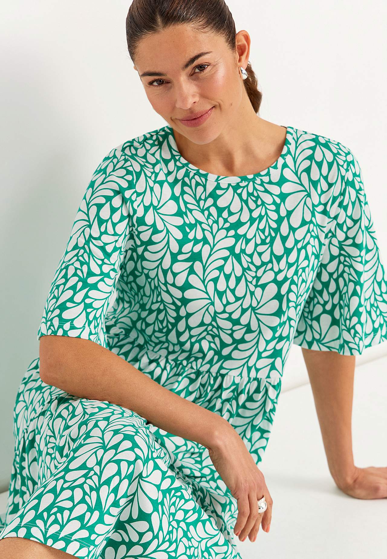 Lockere Passform in A-Form. Rundausschnitt. Naht unter der Büste. Unterteil mit Volant. Sanft abgerundeter Saum. Die Länge des Rückenteils beträgt ca. 108 cm bei allen Größen.