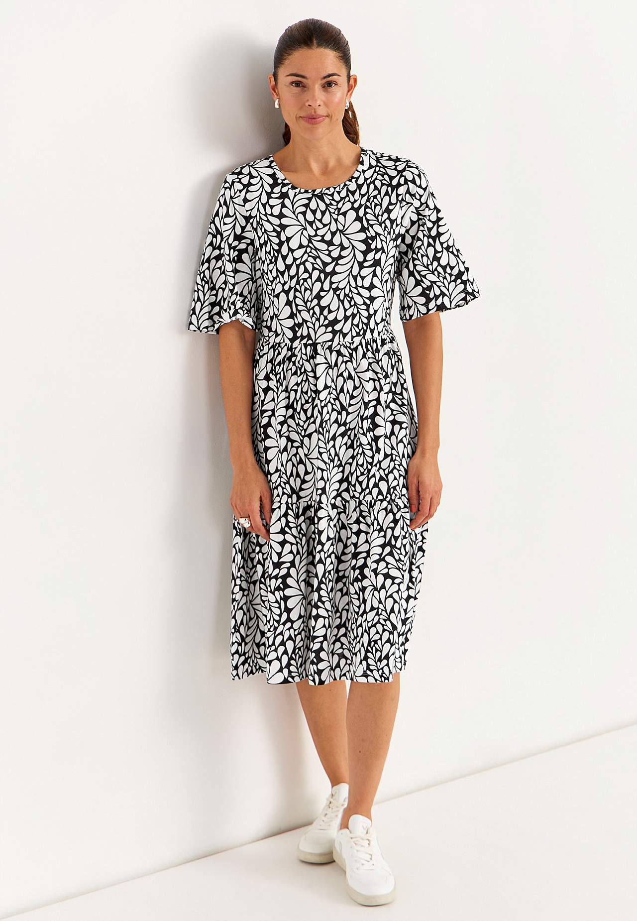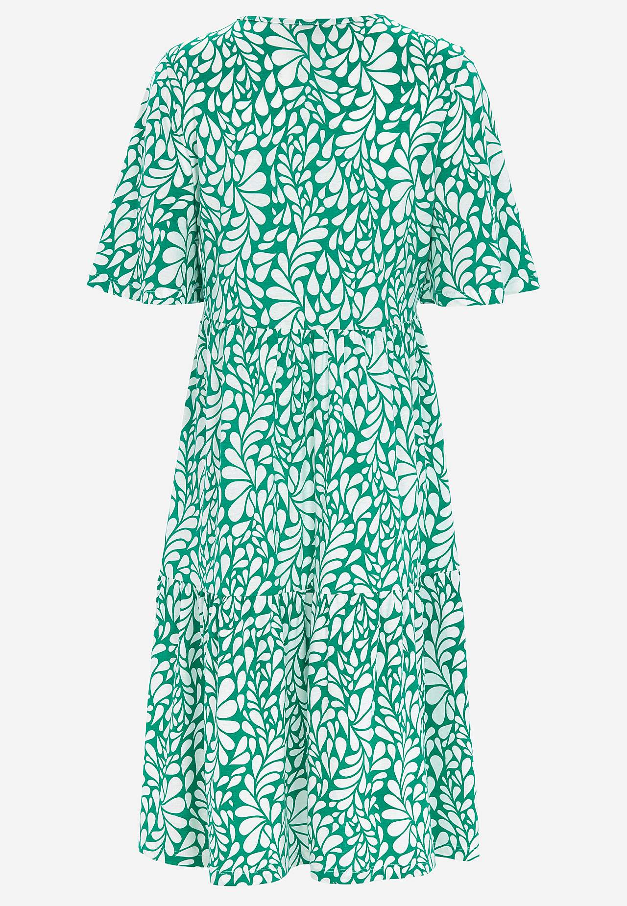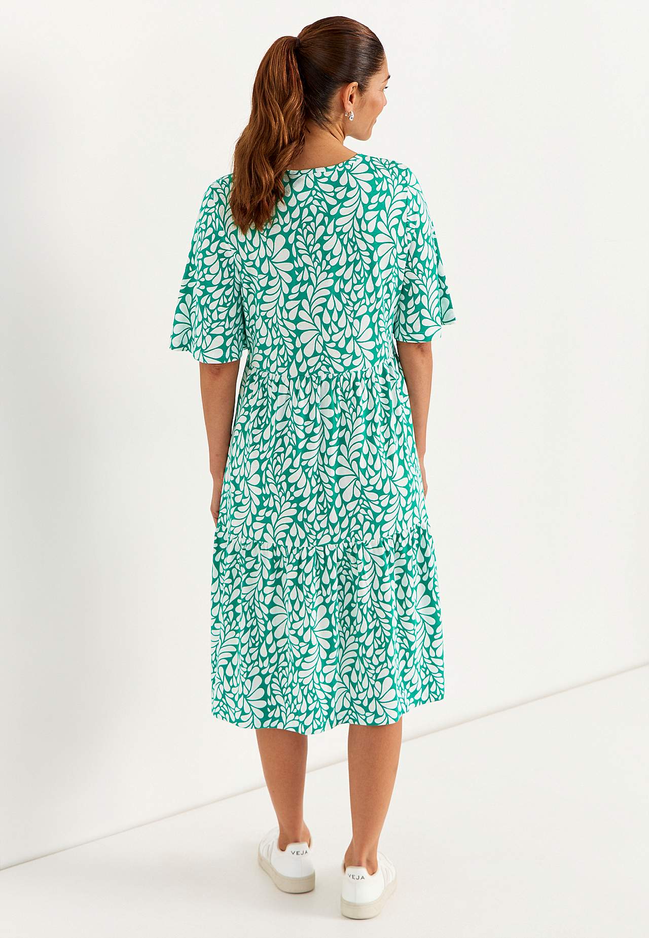 Lockere Passform in A-Form. Rundausschnitt. Naht unter der Büste. Unterteil mit Volant. Sanft abgerundeter Saum. Die Länge des Rückenteils beträgt ca. 108 cm bei allen Größen.
