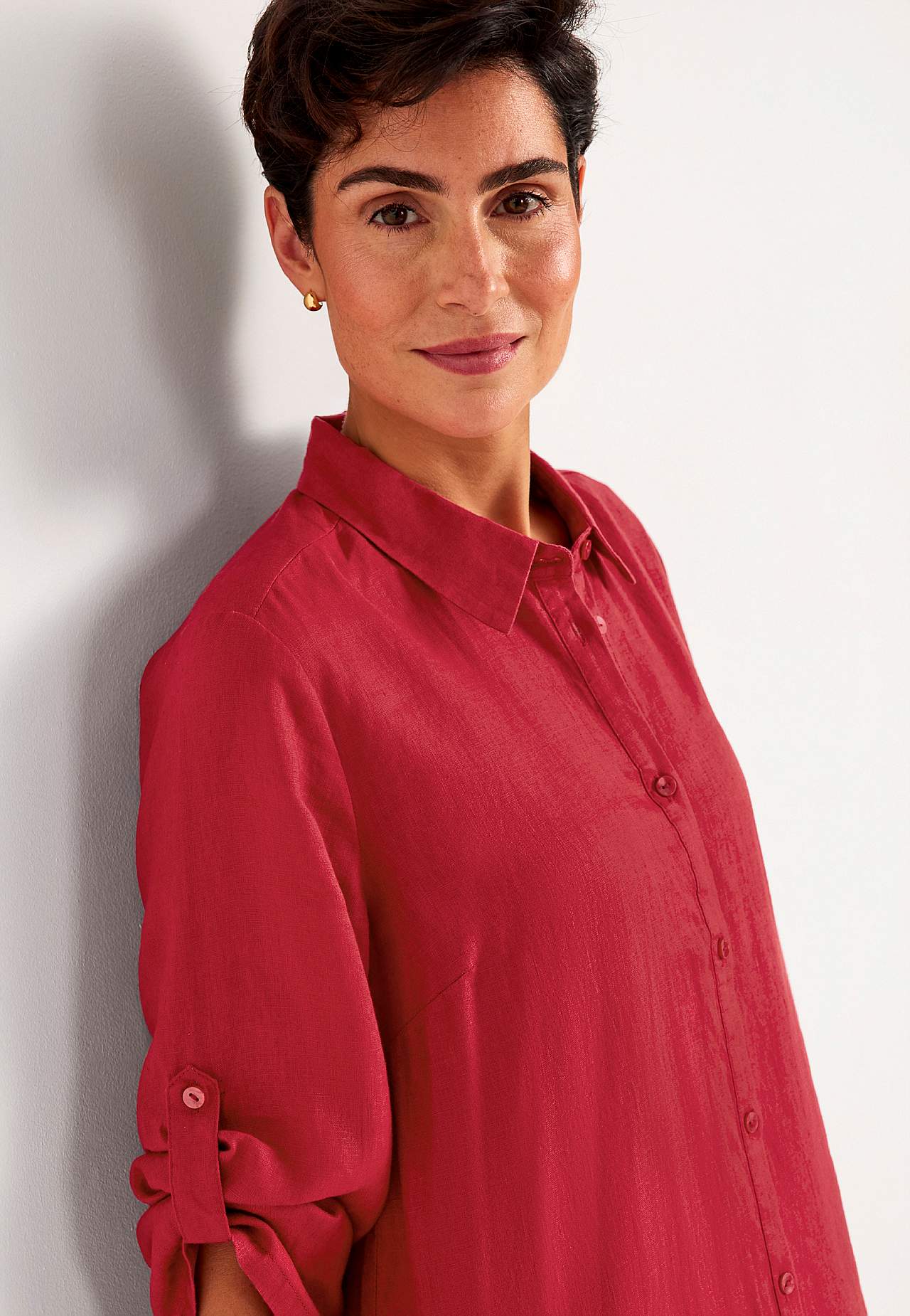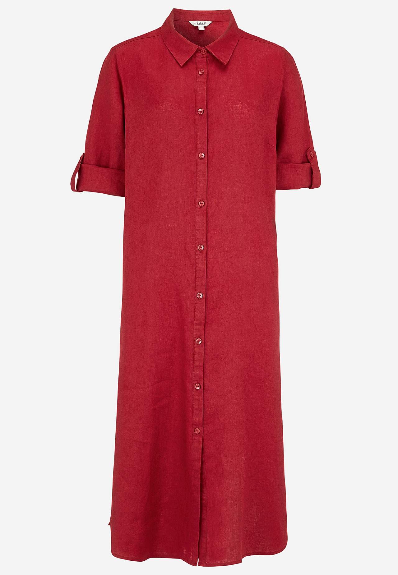 Hemdkleid aus 100% Flachs. Luftiges Material. Geräumige, gerade geschnittene Passform. Knopfleiste von oben nach unten. Faltbarer langer Ärmel mit Knopf-Detail. Abnäher an der Büste für beste Passform. Ein echter Favorit für jeden Tag! Die Länge hängt von der Größe ab und beträgt ca. 116-124 cm (von der Schulter gemessen).
