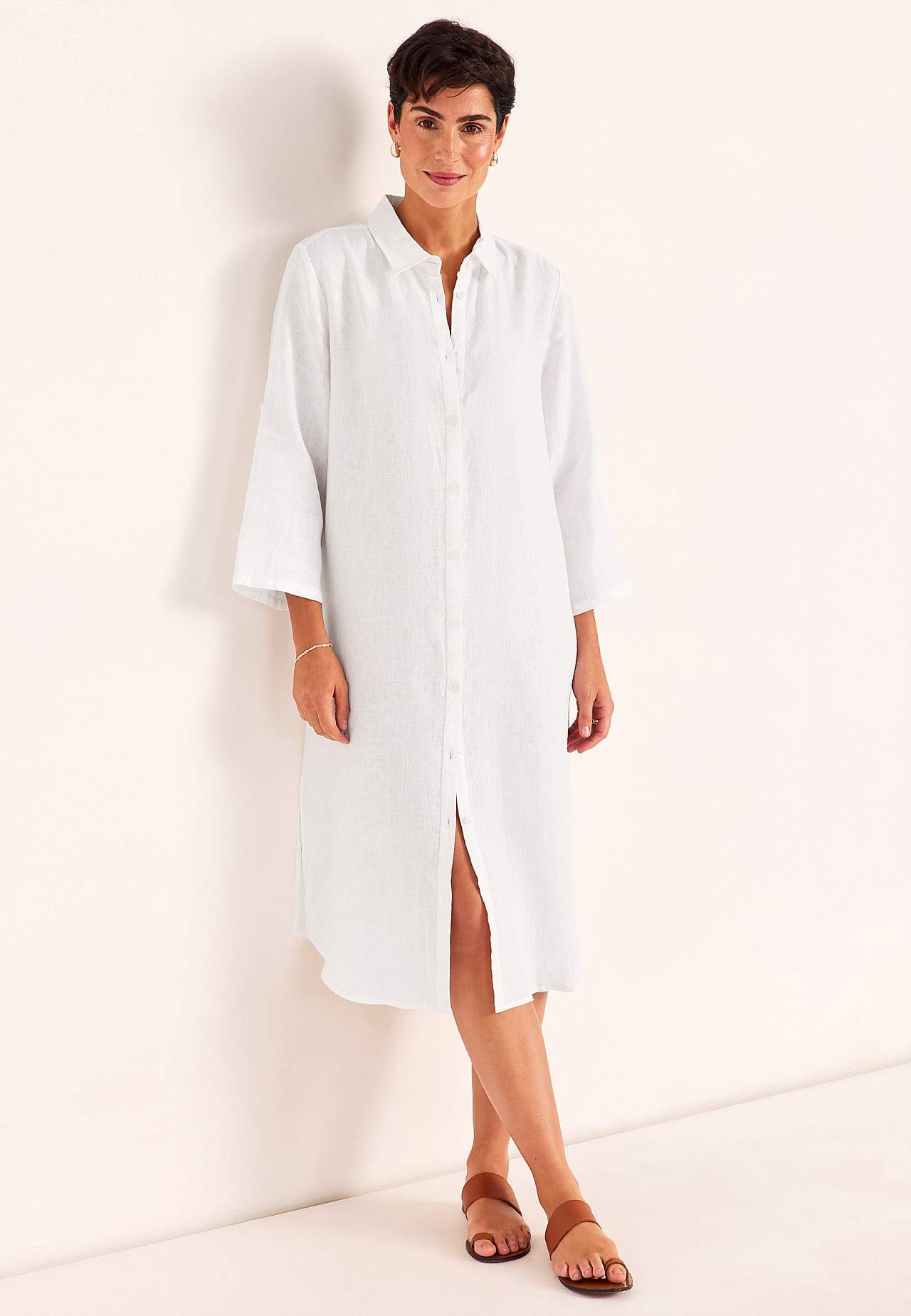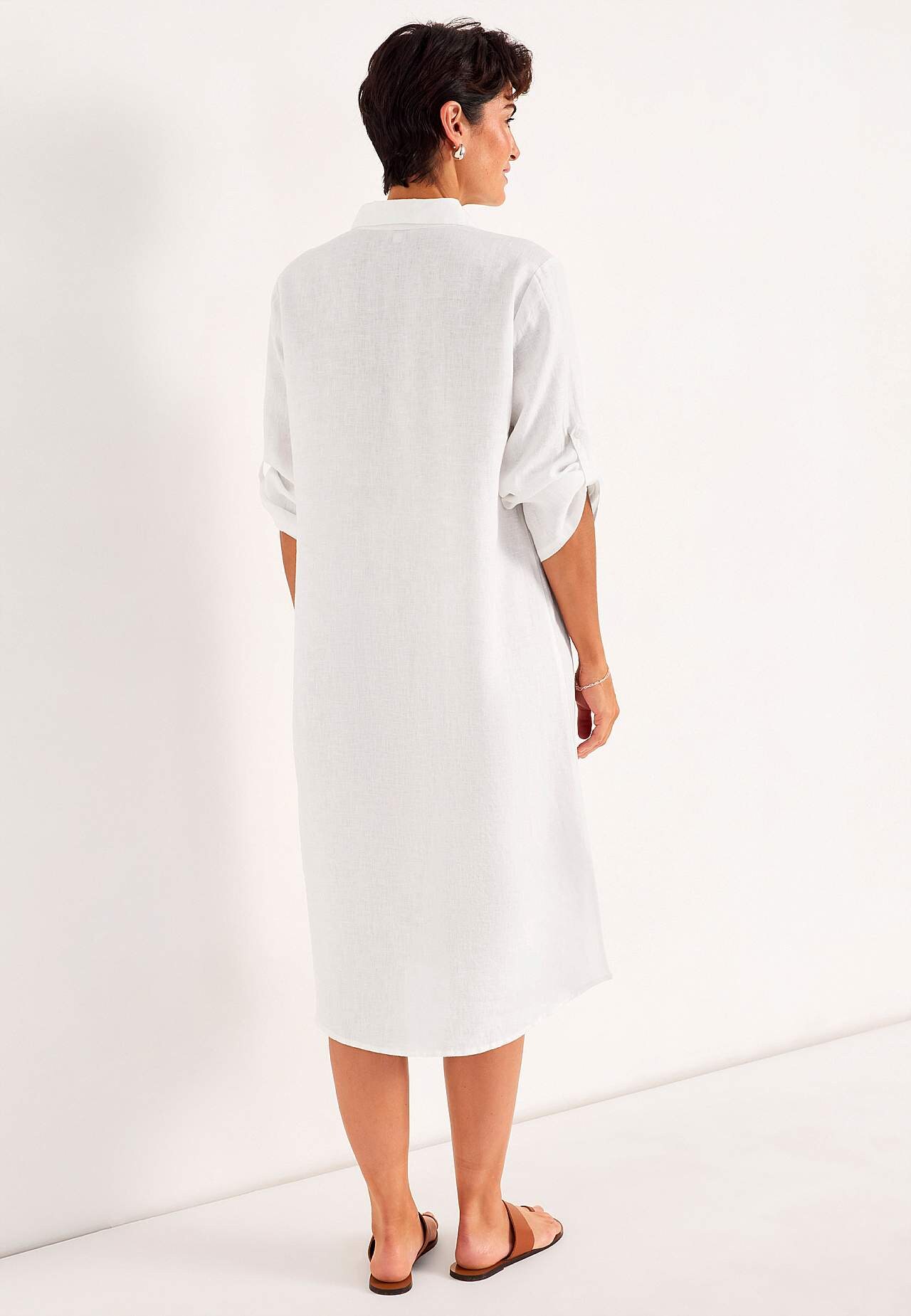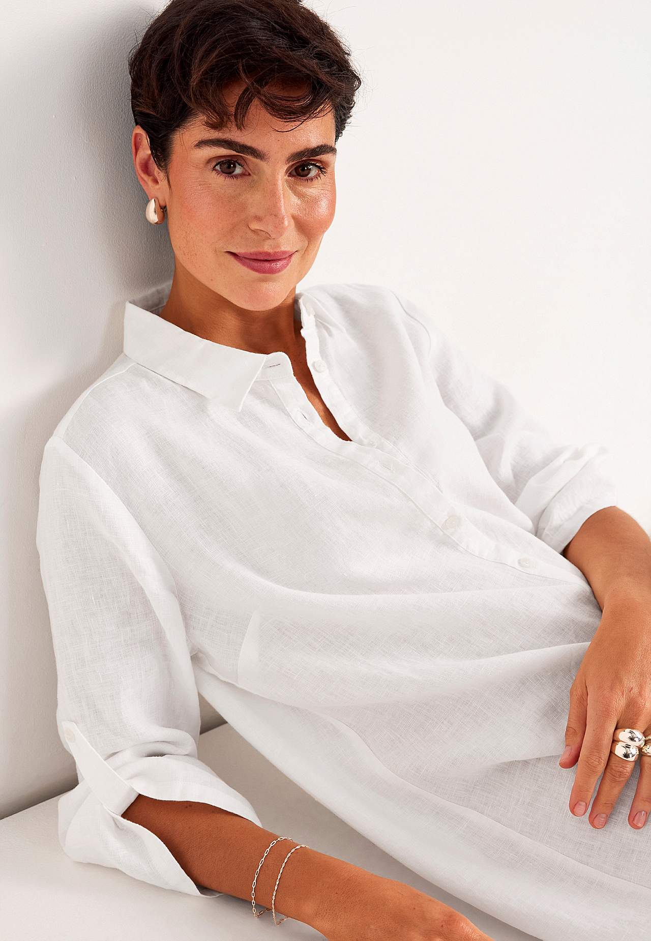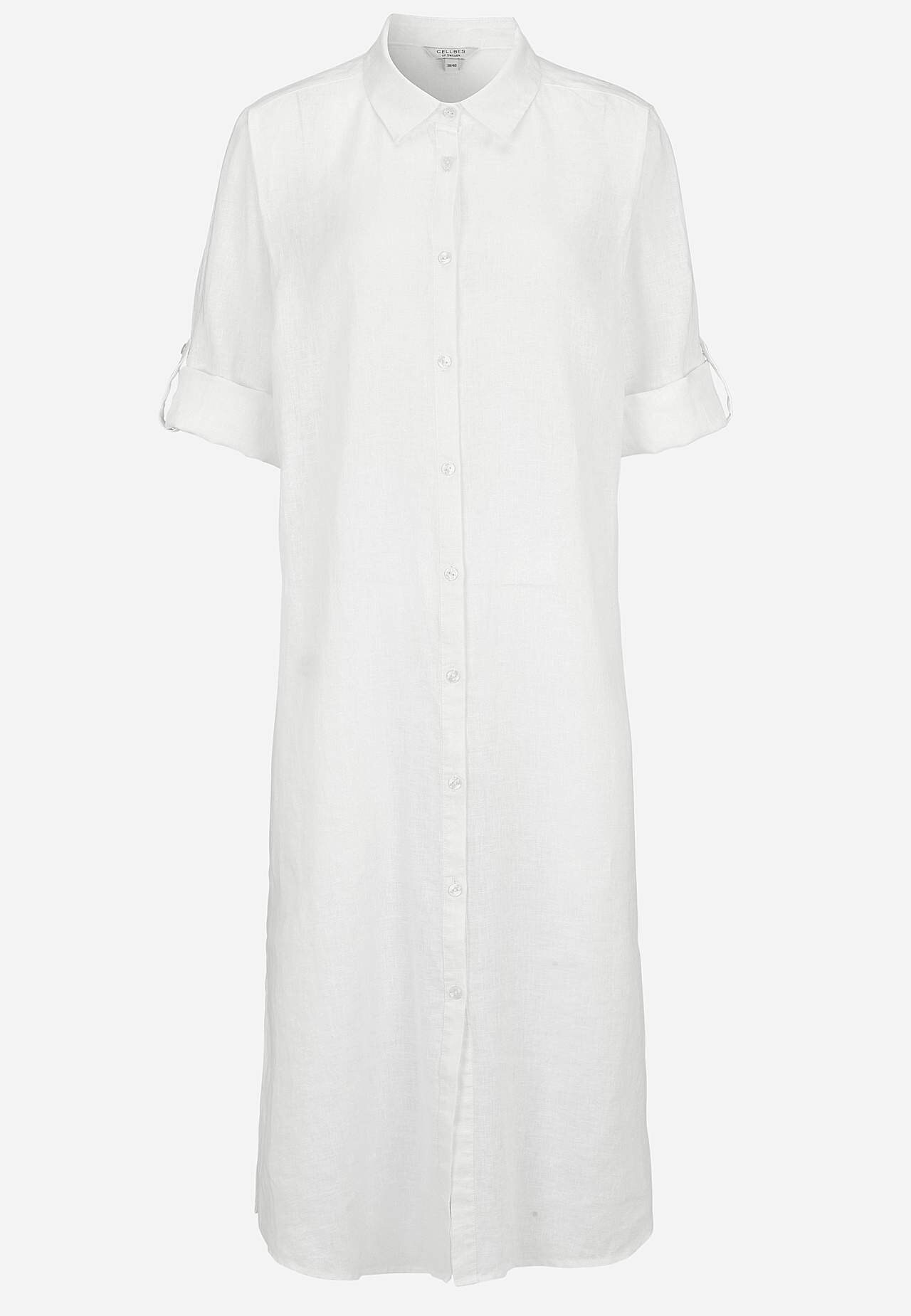 Hemdkleid aus 100% Flachs. Luftiges Material. Geräumige, gerade geschnittene Passform. Knopfleiste von oben nach unten. Faltbarer langer Ärmel mit Knopf-Detail. Abnäher an der Büste für beste Passform. Ein echter Favorit für jeden Tag! Die Länge hängt von der Größe ab und beträgt ca. 116-124 cm (von der Schulter gemessen).