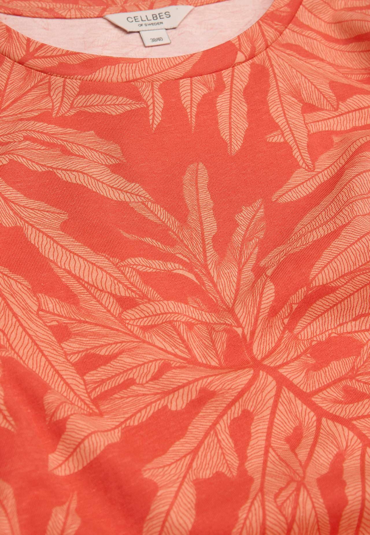 Kurzärmliges Jerseykleid mit angenehmem Blattmuster. Weiche, organische Baumwolle. Passform in A-Form mit ausgestelltem Unterteil. Runder Ausschnitt. Kurze Ärmel. Taschen in der Seitennaht. Sanft abgerundeter Saum. Die Länge des Rückenteils beträgt ca. 122 cm bei allen Größen.