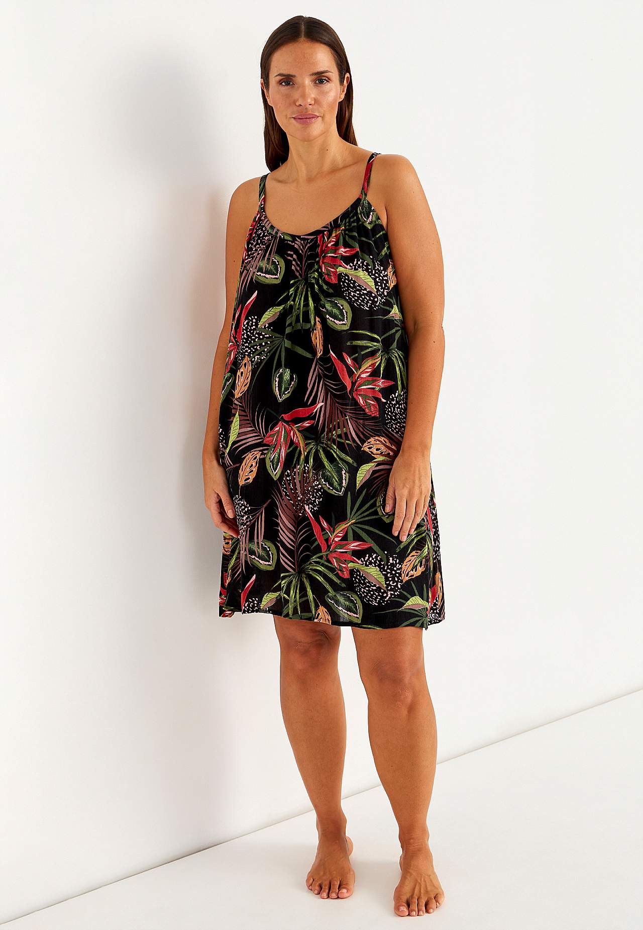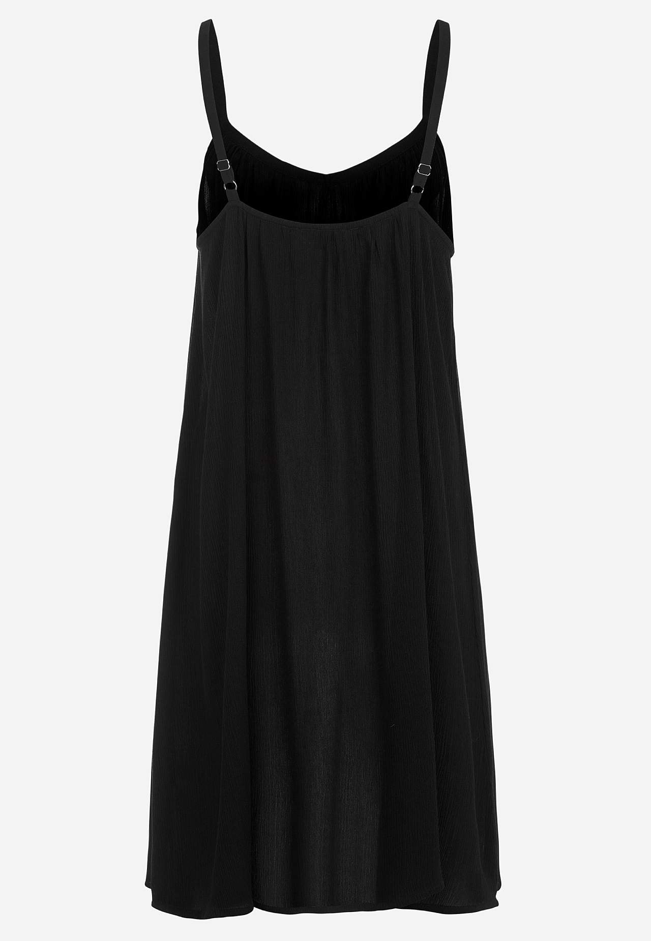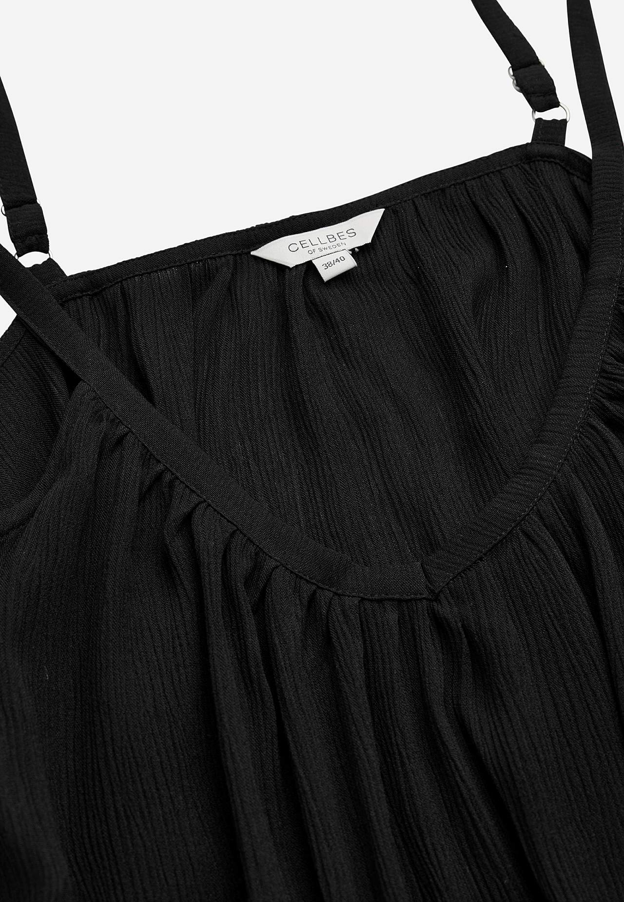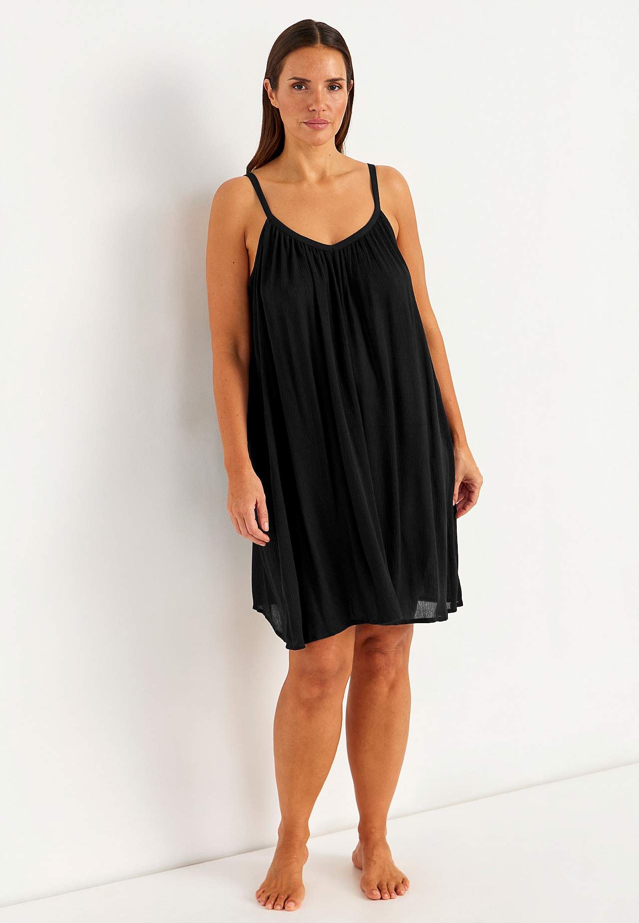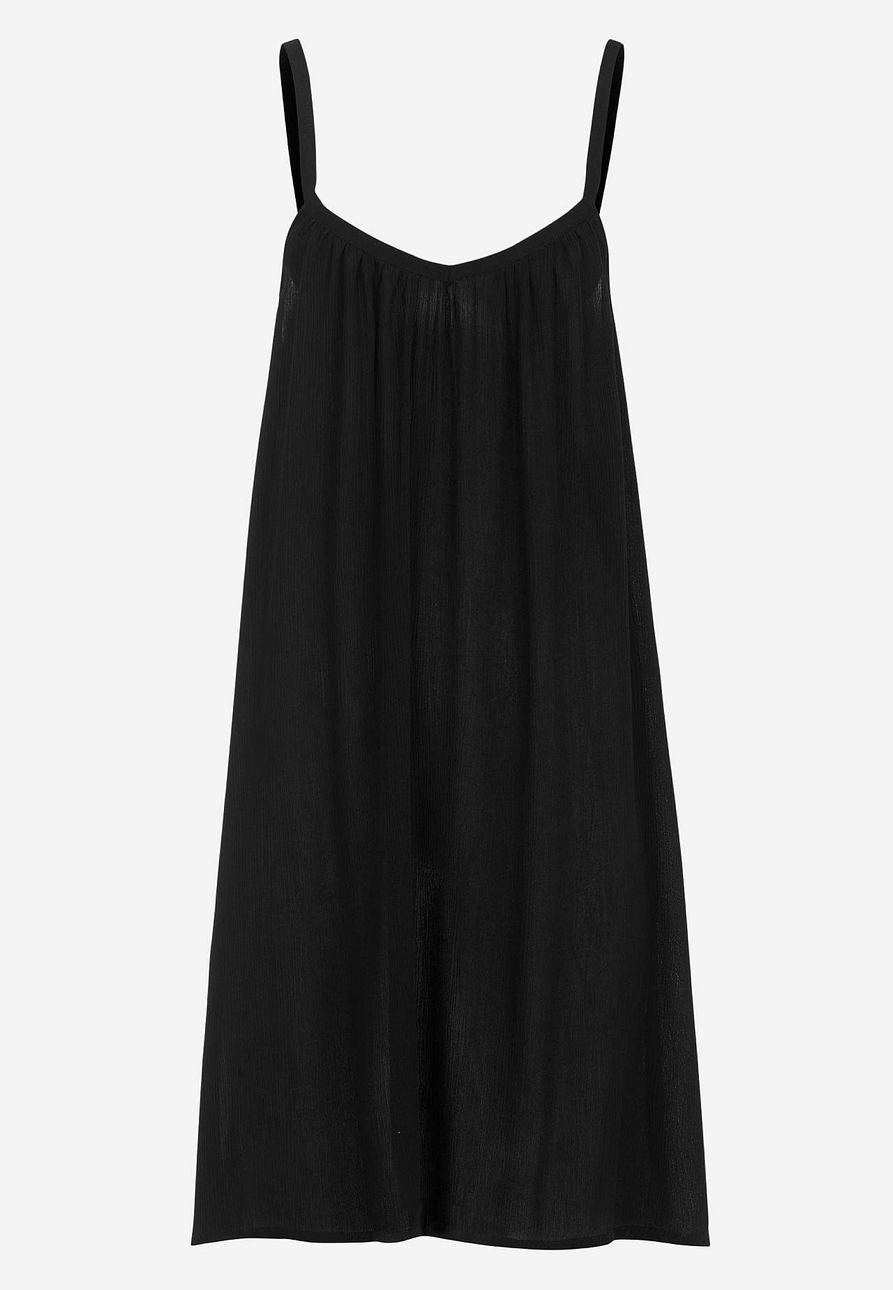 Gewebtes Kleid aus Viskose-Krepp mit Trägerband. Luftiges, weiches Material. Geräumige Passform in A-Form mit angenehmer Breite. Verstellbare Schulterträger. Sanft abgerundeter Saum. Die Länge hinten hängt von der Größe ab und liegt zwischen ca. 69-76 cm.