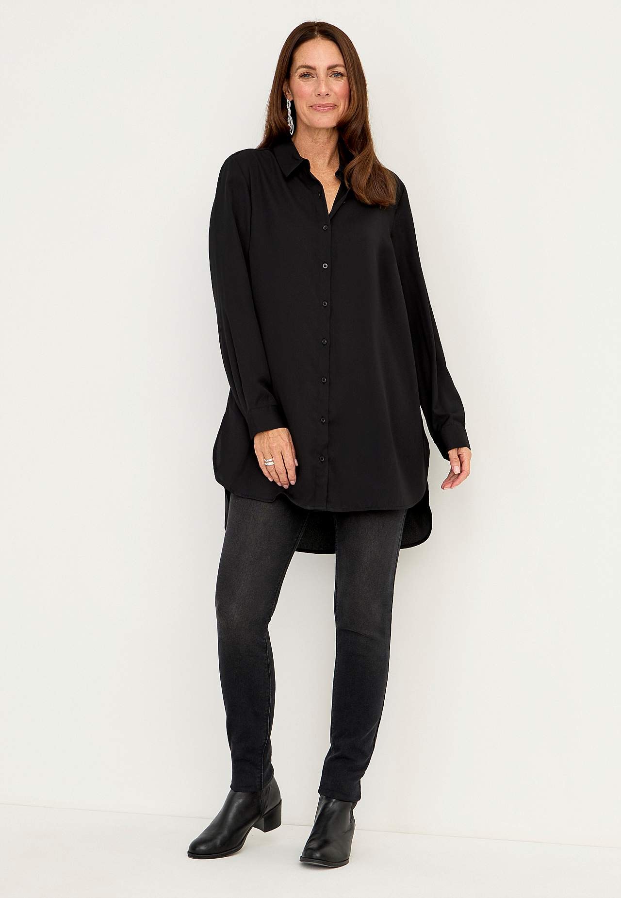 Angenehmer Stretch. Normale Taille. Bund mit Gummiband. Jeans-Look. Die Innenbeinlänge beträgt ca. 72 cm bei allen Größen. Vordere Bundhöhe variiert je nach Größe: ca. 30-40 cm.