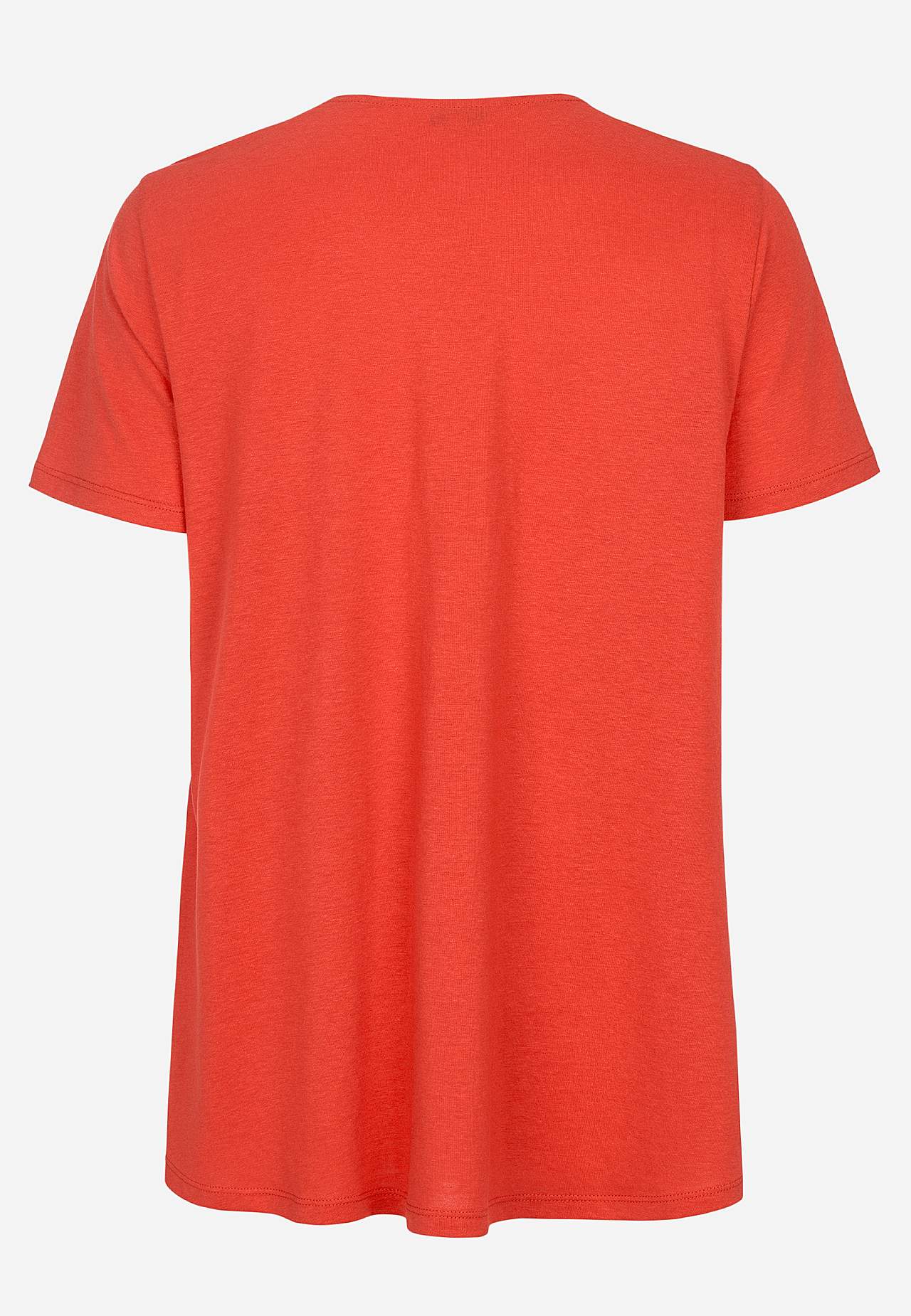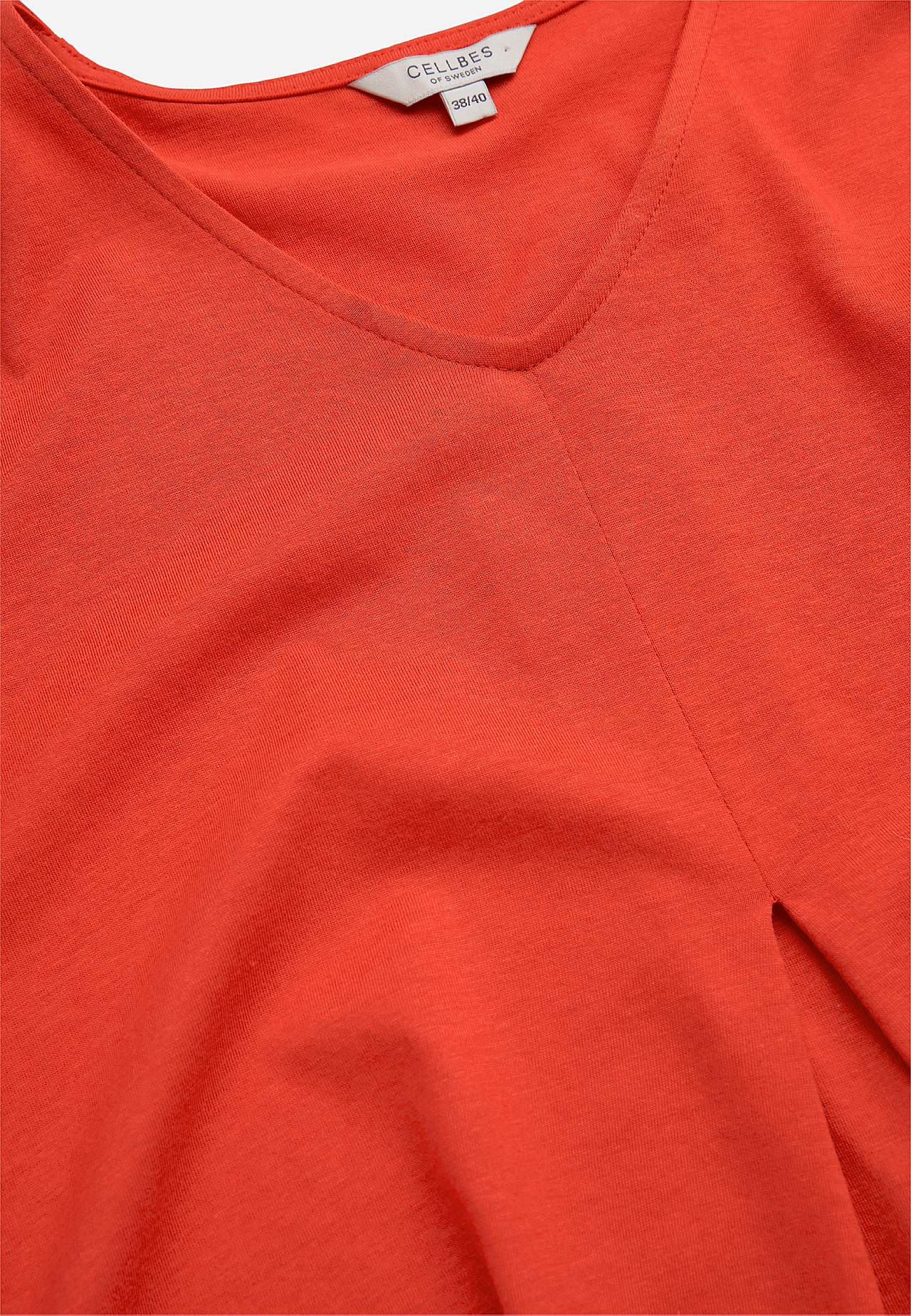 Jersey-Top aus wunderschön weicher Baumwoll- und Modalmischung. Weit-geschnittener Style in A-Form mit rundem Saum. Mit V-Ausschnitt. Schmeichelhafte Kellerfalte über der Brust. Kurze Ärmel. Die Länge hängt von der Größe ab und beträgt ca. 69-84 cm (von der Schulter gemessen).