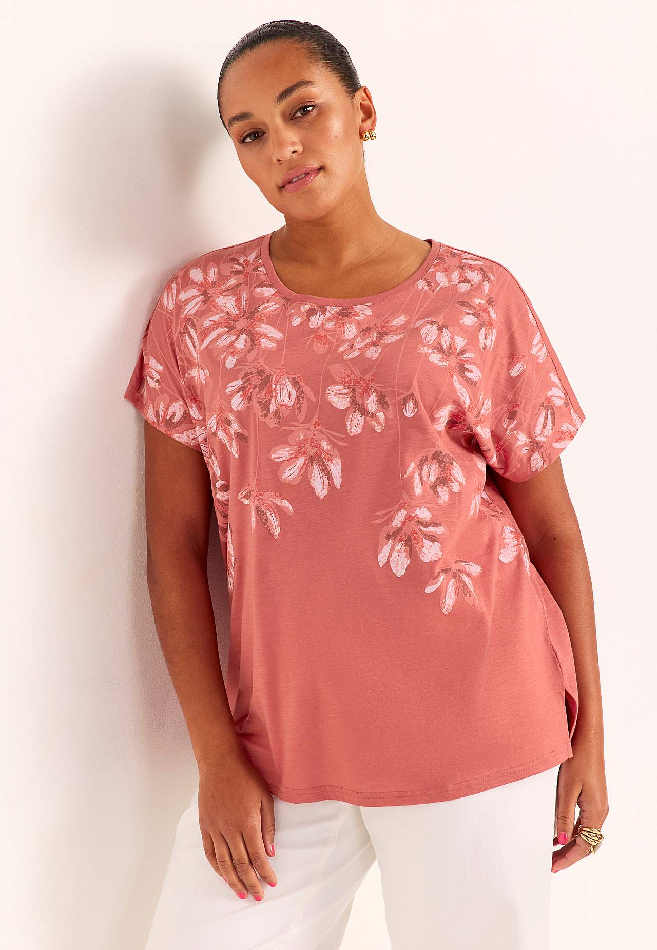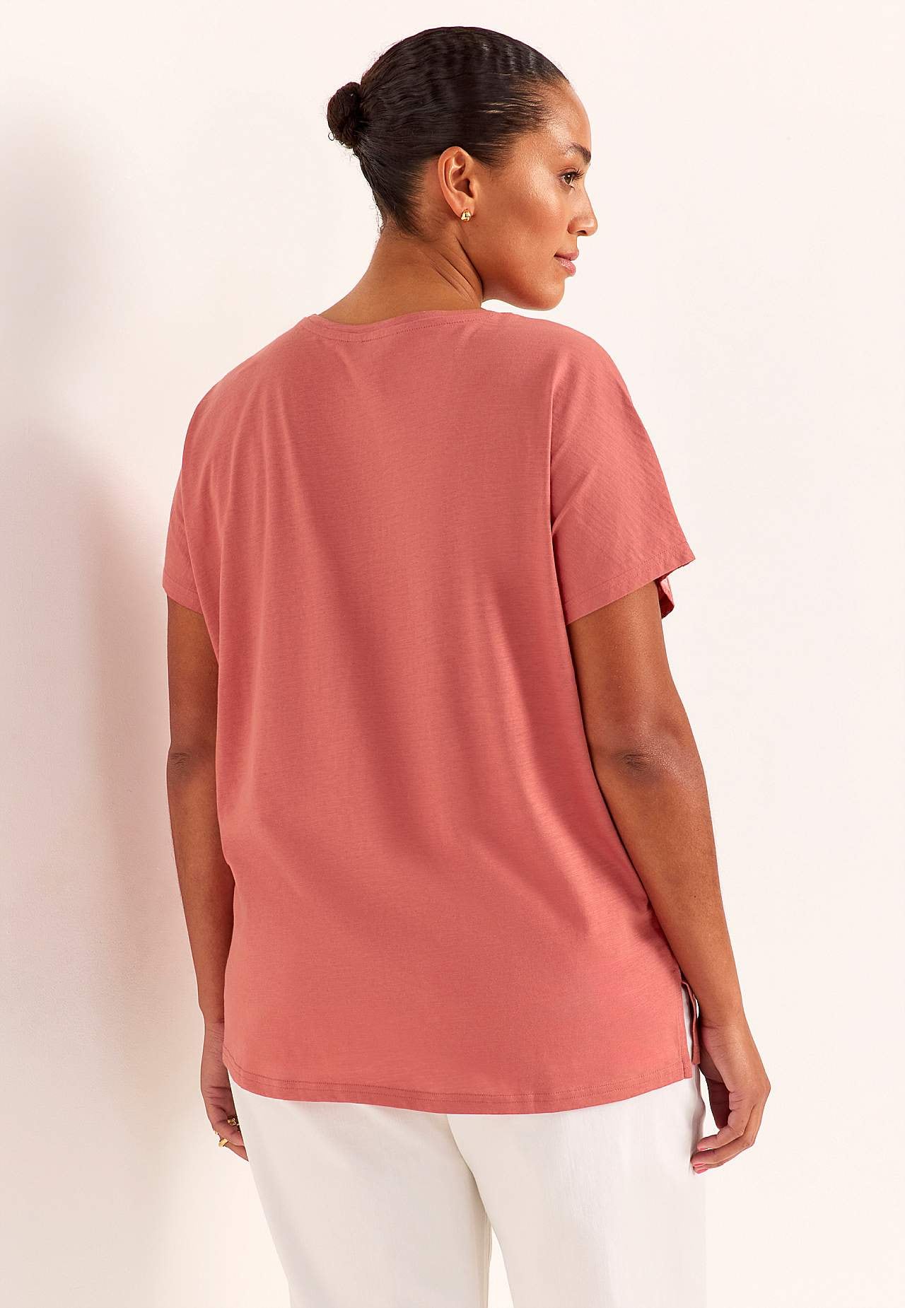 Oberteil aus wunderschön weicher Baumwolle. Gerade Passform. Flügelärmel. Gerader Saum mit Schlitz an den Seiten. Die Länge hängt von der Größe ab und beträgt ca. 67-81 cm (von der Schulter gemessen).