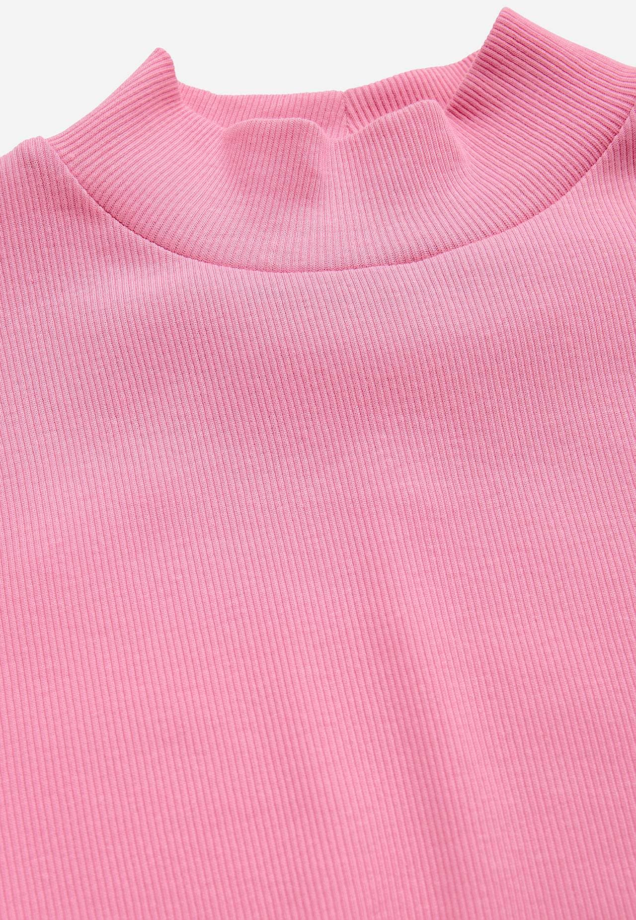 Geripptes Polo-Oberteil aus organischer, weicher Baumwolle. Elastischer, angenehmer Jersey. Normale, gebogene Passform. Aus Bio-Baumwolle hergestellt. Ausschnitt mit Polo-Kragen. Kurze Ärmel. Gerader Saum. Die Länge hängt von der Größe ab und beträgt ca. 59-74 cm (von der Schulter gemessen).