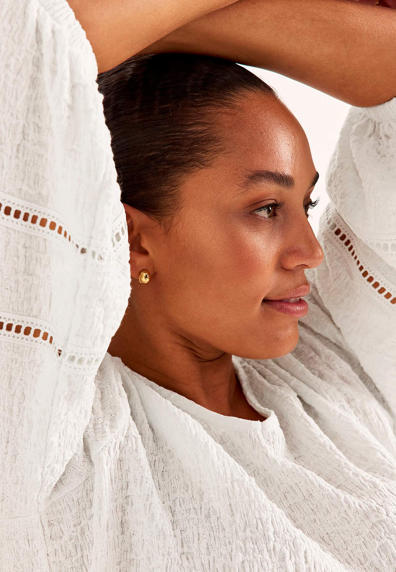 Tunika aus komfortabler, elastischer Baumwollmischung mit Struktur. Nette Details mit Lochmuster an den Ärmeln. Normale Passform mit sanft ausgestelltem Unterteil. Ausschnitt mit einem V-Ausschnitt. 3/4-lange, breite Ärmel mit Gummiband an den Manschetten und Zierstichen mit Lochmuster. Gerader Saum. Die Länge hinten hängt ... Mehr erfahren