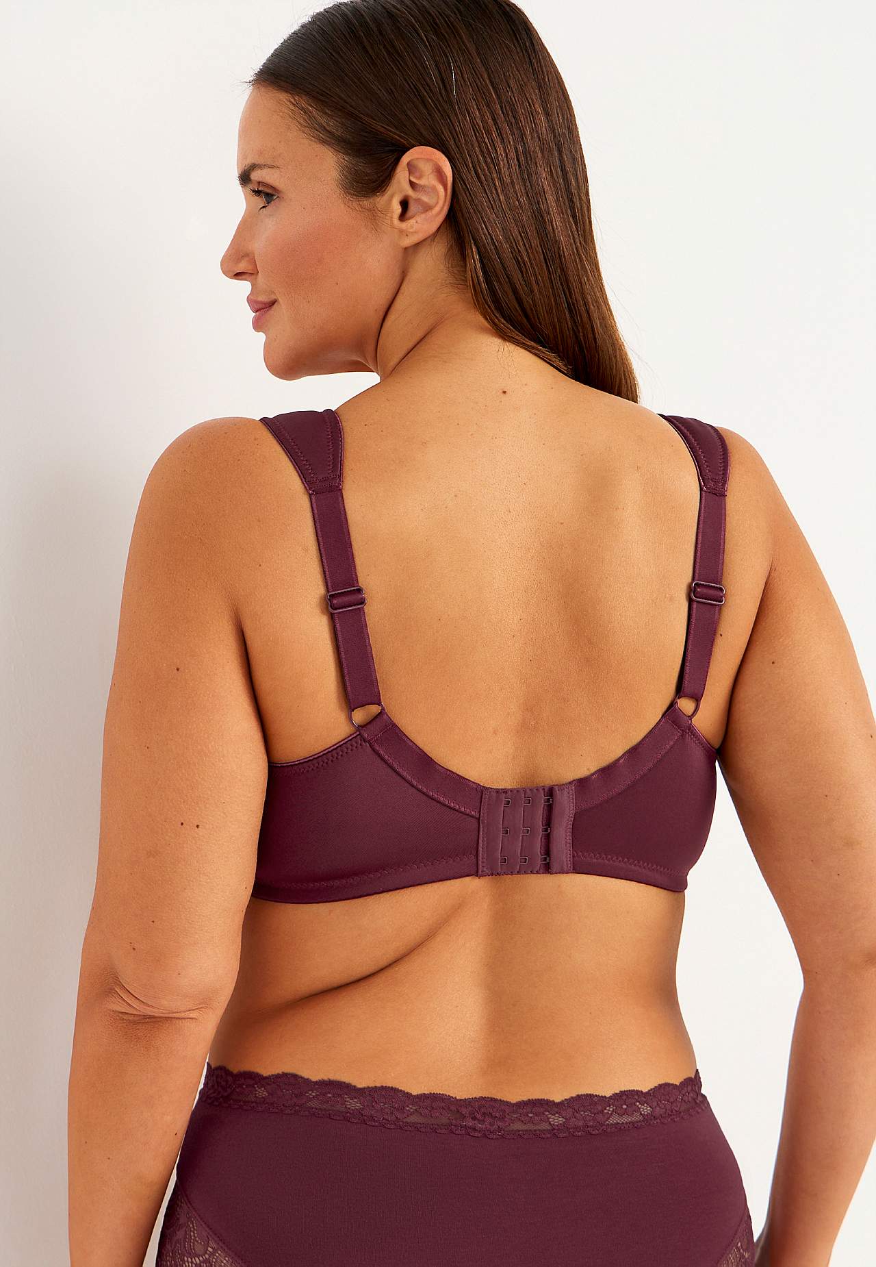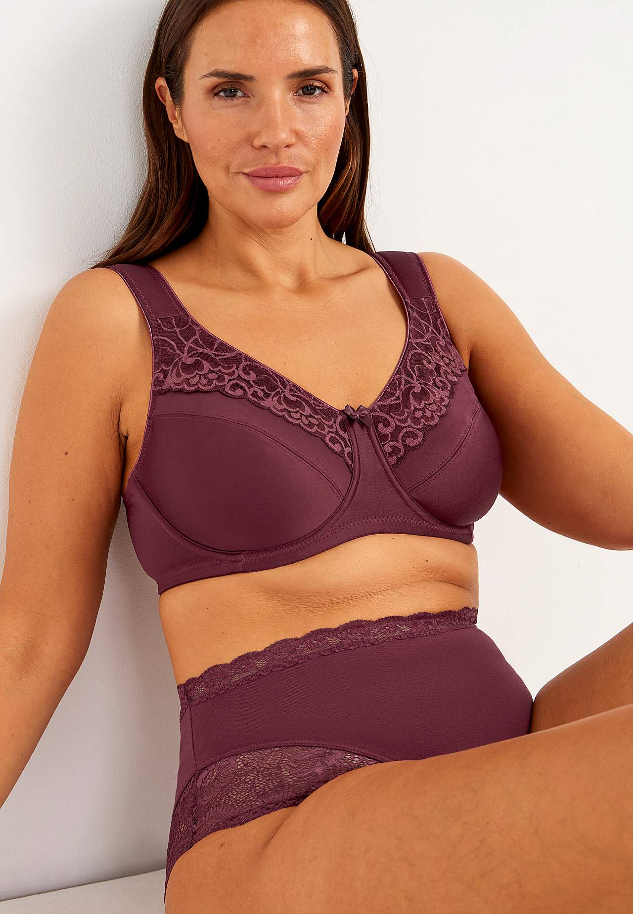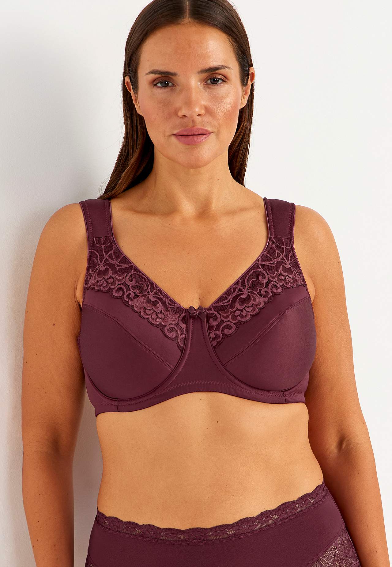 Ungepolsterter Bügel-BH mit schöner, elastischer Spitze. Geformte Körbchen was den Brüsten gute Unterstützung verleiht. Oberes Teil des Körbchens mit Spitze auf der Oberseite. Glatte Körbchennähte. Breite, gepolsterte verstellbare Schulterträger. 2-reihige Verschlüsse im Rücken, 3-reihige Verschlüsse in den größeren Größen.... Mehr erfahren