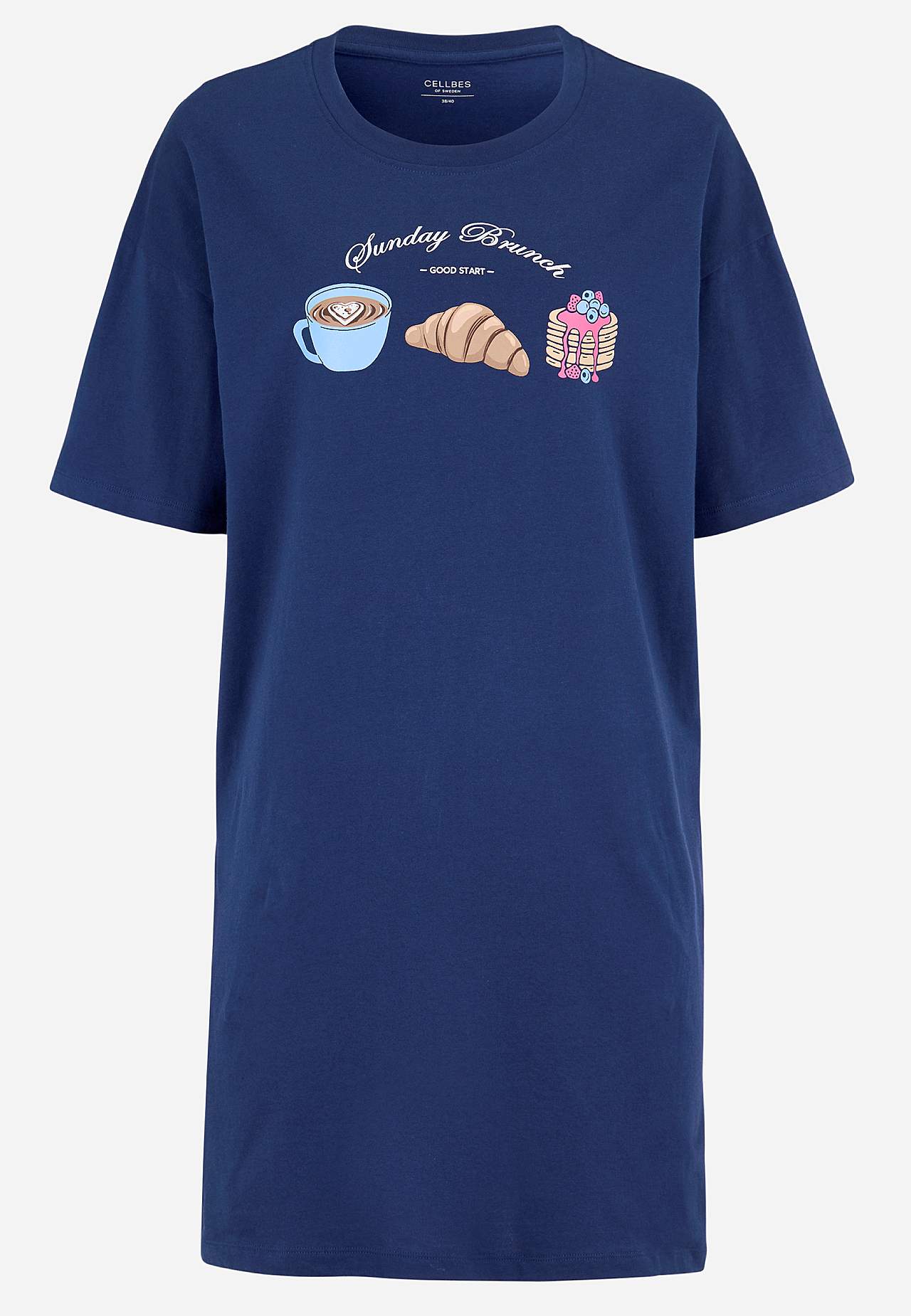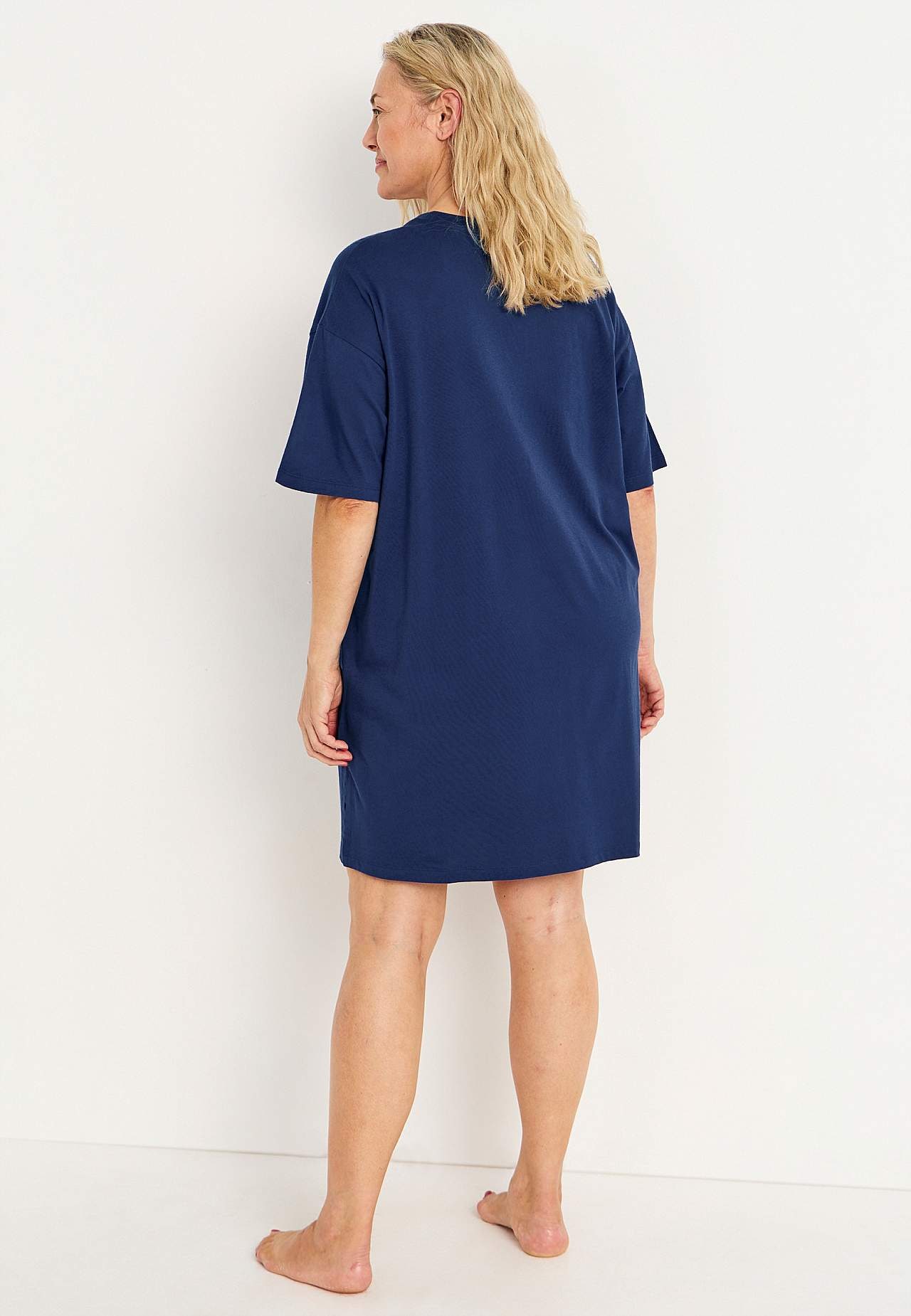 Kurzes Nachtkleid aus weicher Bio-Baumwolle. Druck vorne. Lässige, gerade Passform. Runder Ausschnitt. Kurze Ärmel mit Drop-Schulter. Gerader Saum mit Schlitz an den Seiten. Die Länge hängt von der Größe ab und beträgt ca. 88-95 cm (von der Schulter nach hinten gemessen).