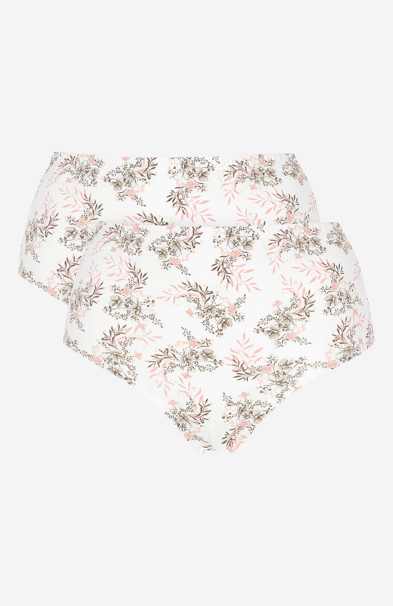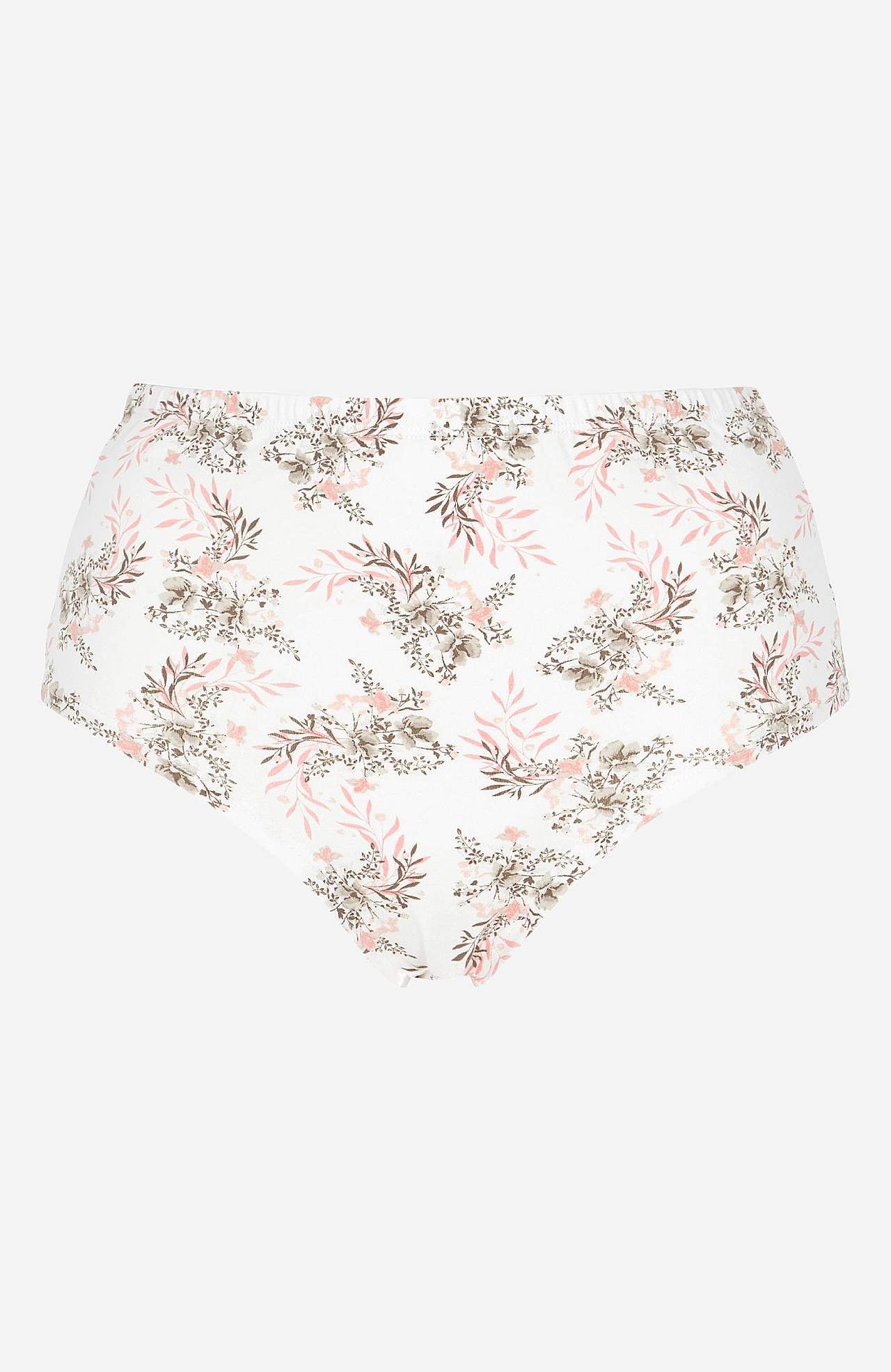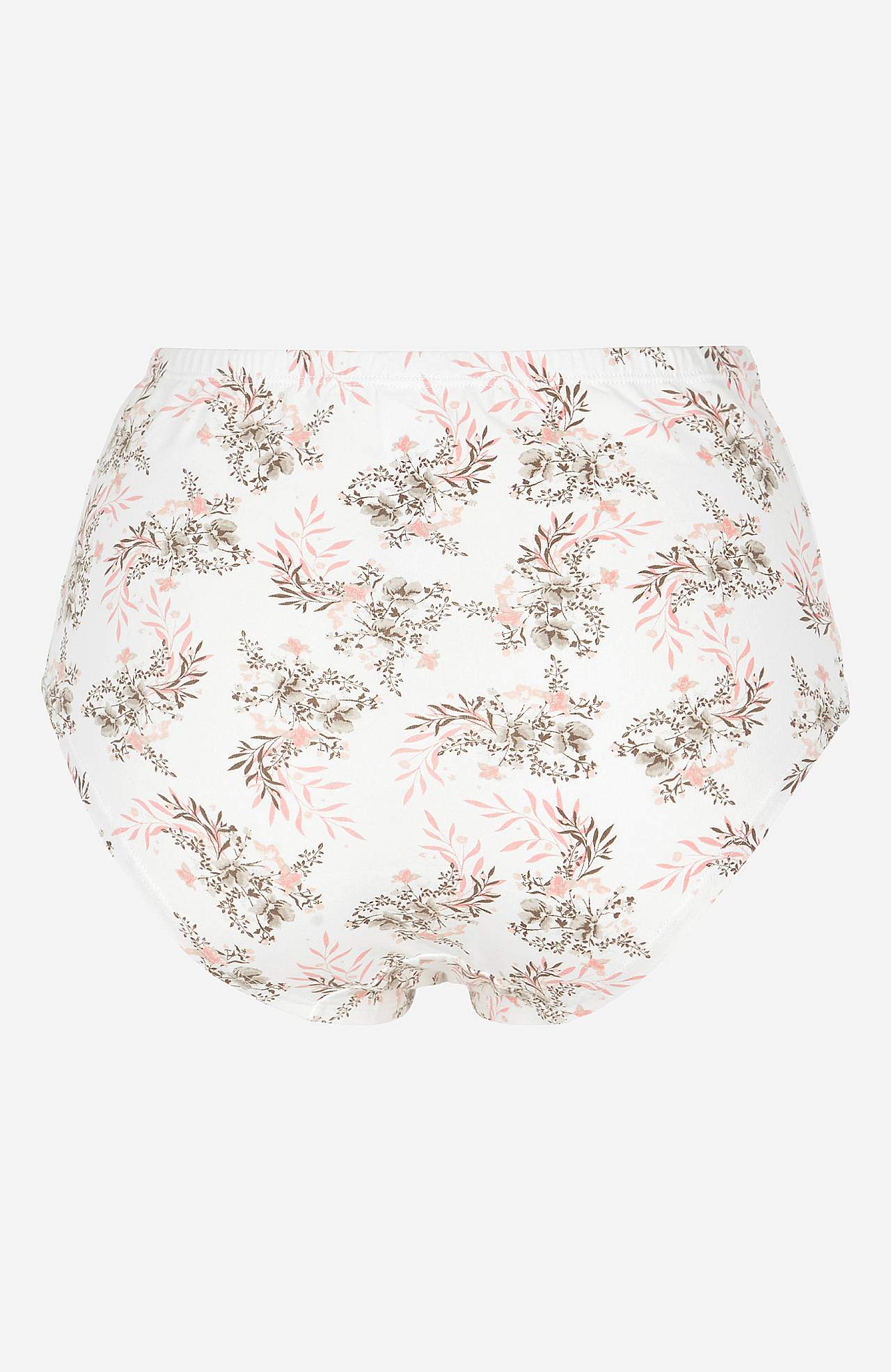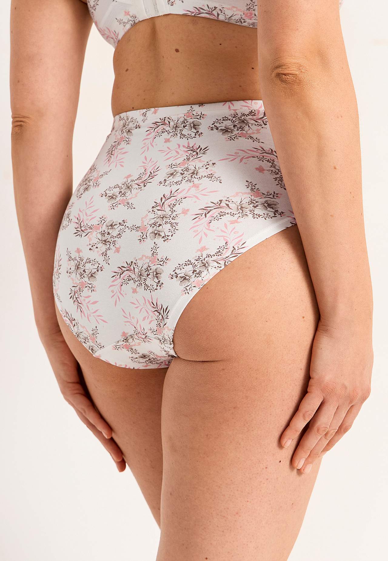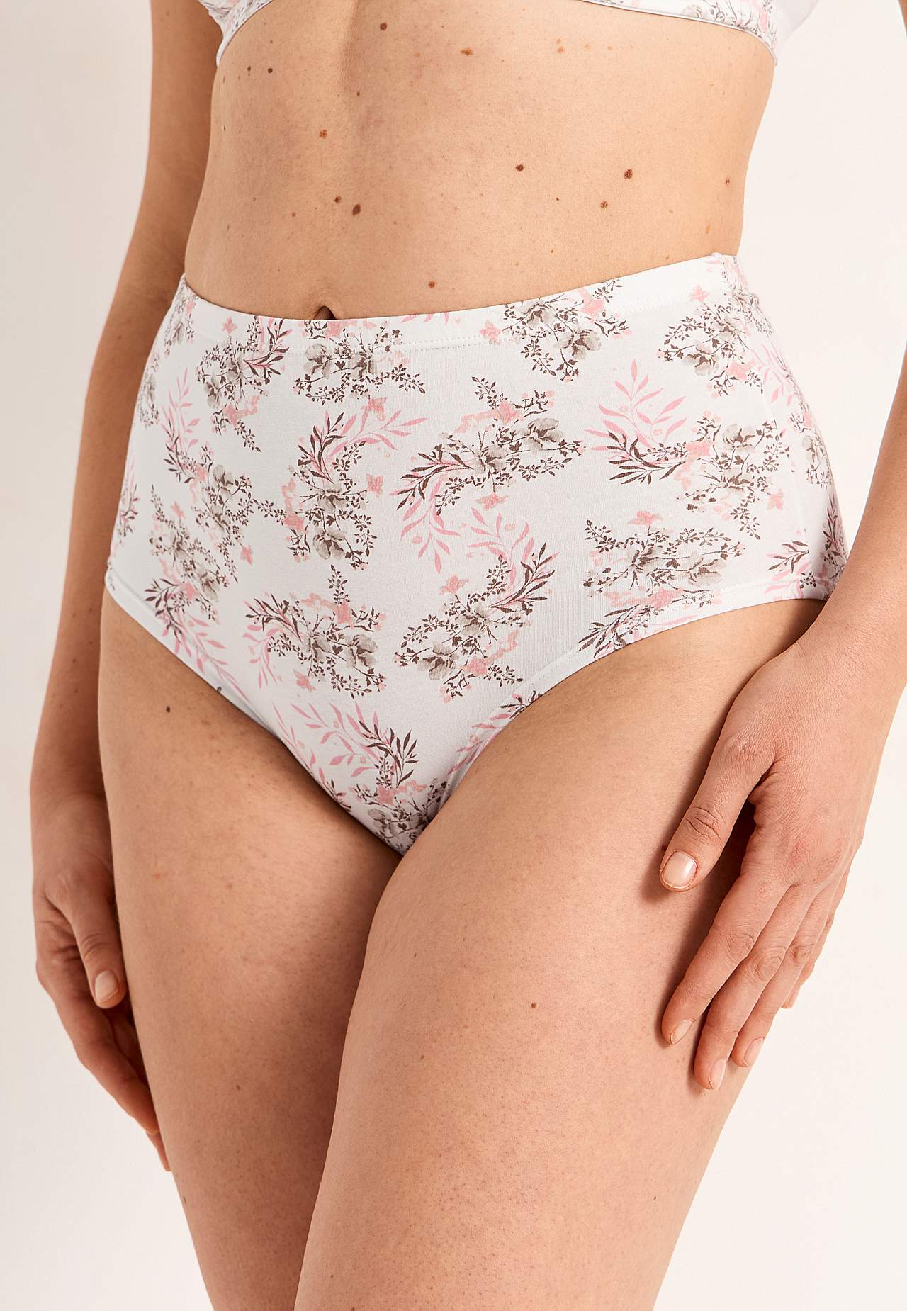 Modell mit hoher Taille. Weiches, eingefügt Gummiband in der Taille. Elastische Nähte an den Beinöffnungen. Mit Baumwolle gefütterter Zwickel.