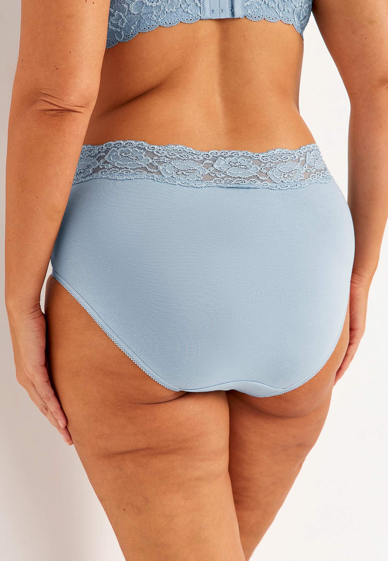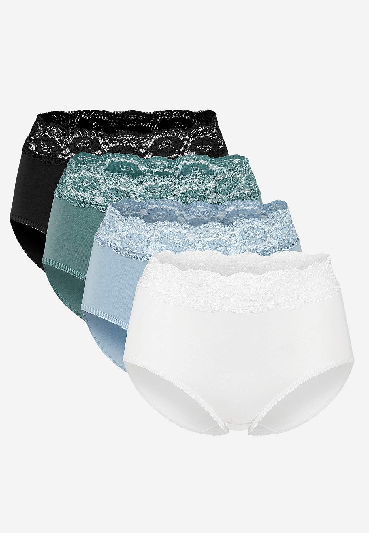 Midi-Slip aus weicher, organischer Baumwolle und breiter, angenehmer Spitze in der Taille. Perfekte Alltagshöschen im günstigen 4er-Pack. Dünnes Gummiband an der Beinöffnung. Mit Baumwolle gefütterter Zwickel.