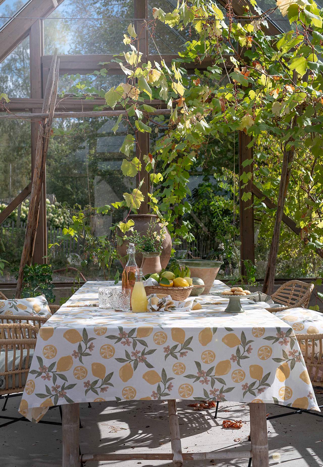 Tischdecke mit Zitronenmuster